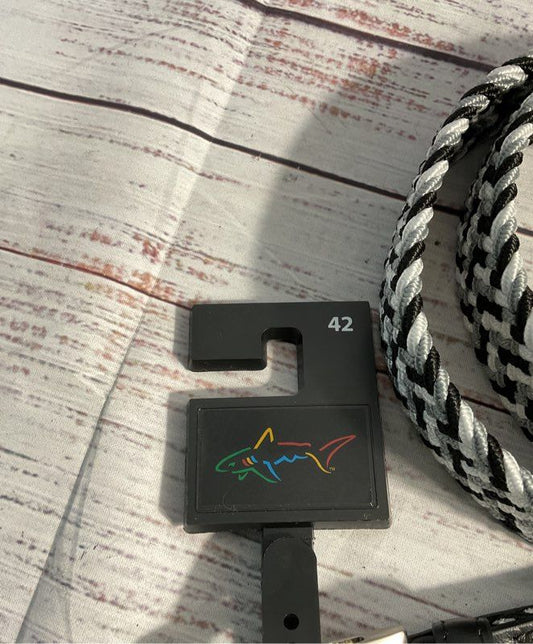 Clothing > Men's Clothing > AccessoriesNEW Greg Norman Knit Braided Black & White Genuine Leather Tab Belt Size 42