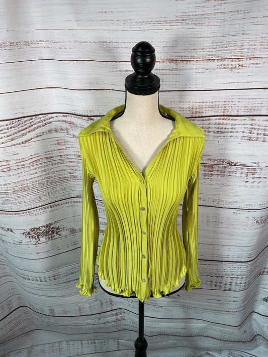 Clothing > Women's ClothingMNG By MANGO Women's Lime Button Up Shirred Long Sleeve Shirt Size 4