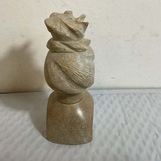 Signed VTG. Carved Limestone Abstract Bust Sculpture/Paperweight- 5.25"