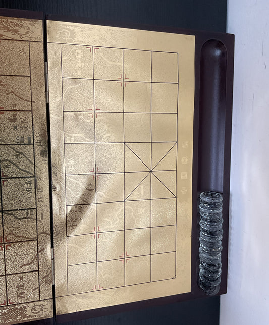 Etched Glass Xiangqi Chinese Chess Set With Mahogany Wood Case