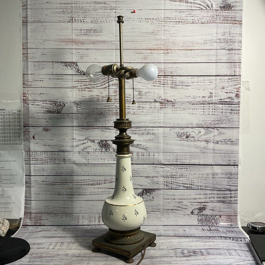 For The Home > Home Decor > Lamps/LightingVintage Stiffel Porcelain Brass White Floral Footed 33" Table Lamp WORKS