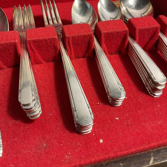 Tableware and Kitchenware > Flatware > Silver PlatedVTG. Oneida Community Elaine Silver Plate 41 Pc. Flatware Set In Wooden Case