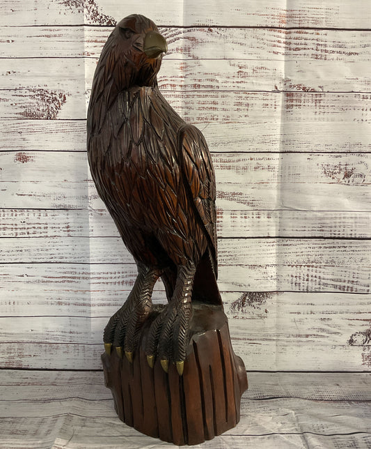 For The Home > Home DecorVintage Hand Wood Carved Brass Detail Eagle Statue Brown