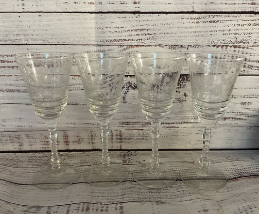 Tableware and Kitchenware > GlasswareLibbey Rock Vintage Etched Sharpe Glass Goblets Lot of 4