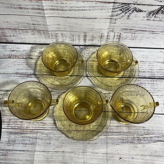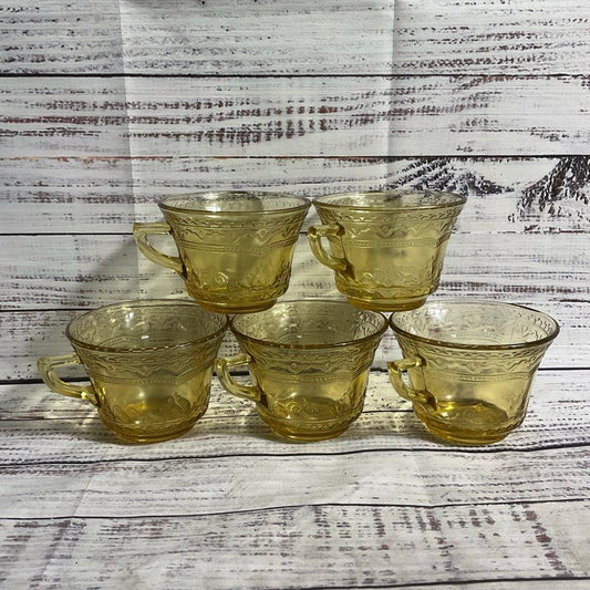 Tableware and Kitchenware > GlasswareVtg. Federal Glass Patrician Amber 5 Pc. Depression Era Tea Cup Set