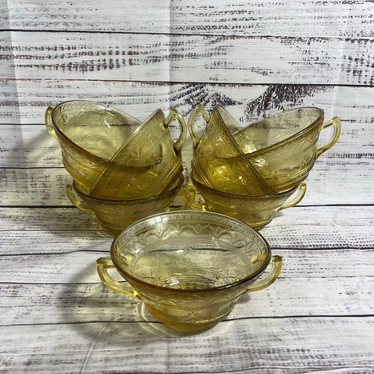 Tableware and Kitchenware > Dinnerware > BowlsVtg. Federal Glass Patrician Amber 7 Pc. Depression Era Cream Soup Bowl Set