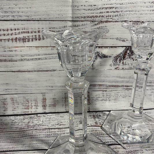 Tableware and Kitchenware > GlasswareSet Of 2 Orrefors Lily Flower Crystal Glass Candlesticks