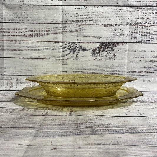 Tableware and Kitchenware > Serving Pieces > HollowareVtg Federal Glass Patrician Amber Depression Oval Serving Plate & Vegetable Bowl