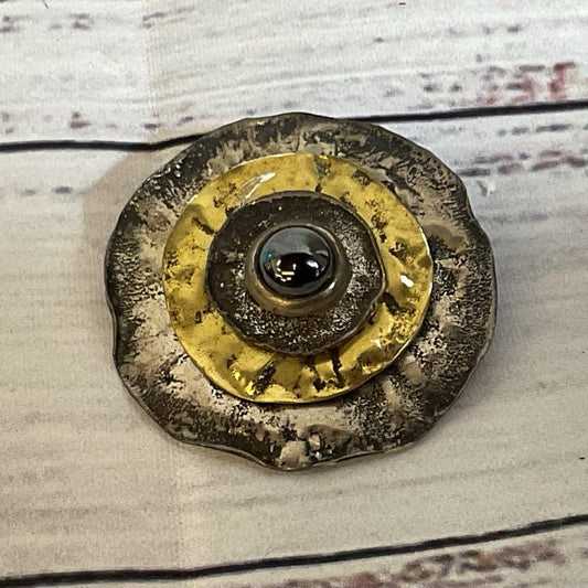 Jewelry & Gemstones > Brooches/PinsVTG. Sterling Silver Gold Tone Hematite Modernist Hammered Brooch- 1.5"