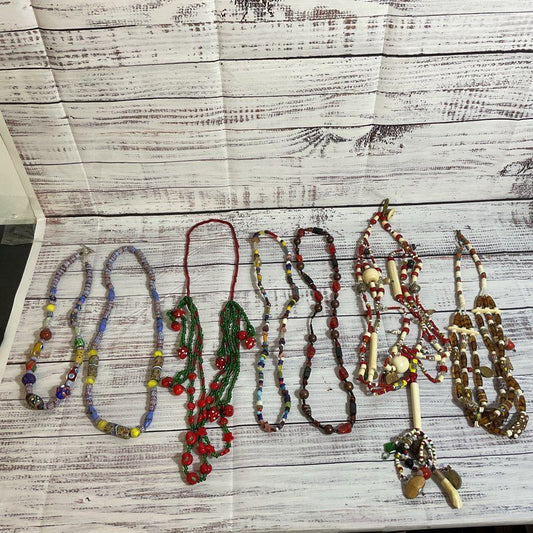 Jewelry & Gemstones > NecklacesSet of 7 VTG. Multi Gemstone, Millefiori and Glass Beaded Necklaces