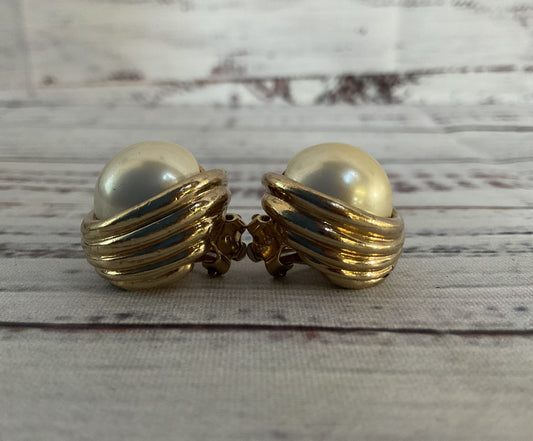 Jewelry & Gemstones > EarringsVintage Panetta Gold Plated Faux Pearl Clip-On Earrings