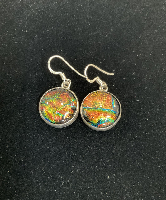 Jewelry & Gemstones > EarringsHandcrafted Sterling Silver Multi-Color Dichroic Glass Drop Dangle Earrings
