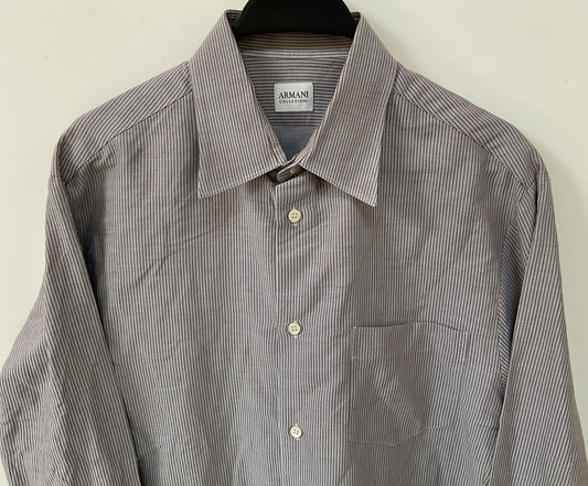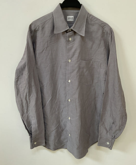 Clothing > Men's Clothing > ShirtsArmani Collezioni Men's Brown Long Sleeve Striped Cotton Button Down Shirt M