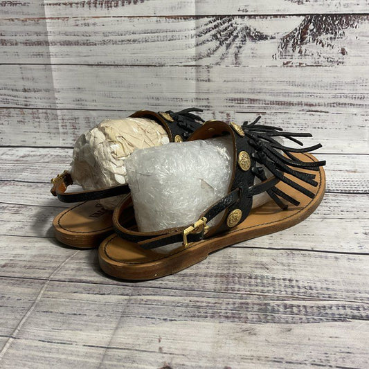 Clothing > Women's Clothing > Shoes Women'sValentino Garavani Black Leather Fringe Coin Detail Gladiator Sandal Flats sz 6