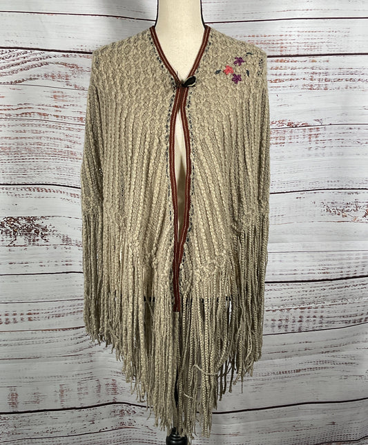 Clothing > Women's Clothing > OuterwearBurning Torch Karyn Craven Knit Fringe Poncho Beige OS