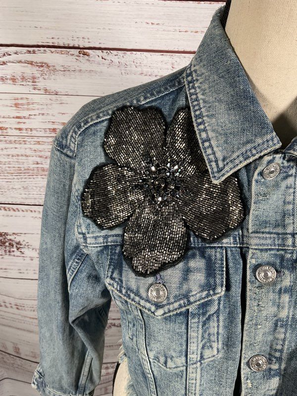 7 For All Mankind Women's Blue Cropped Denim Trucker Jacket Size XS