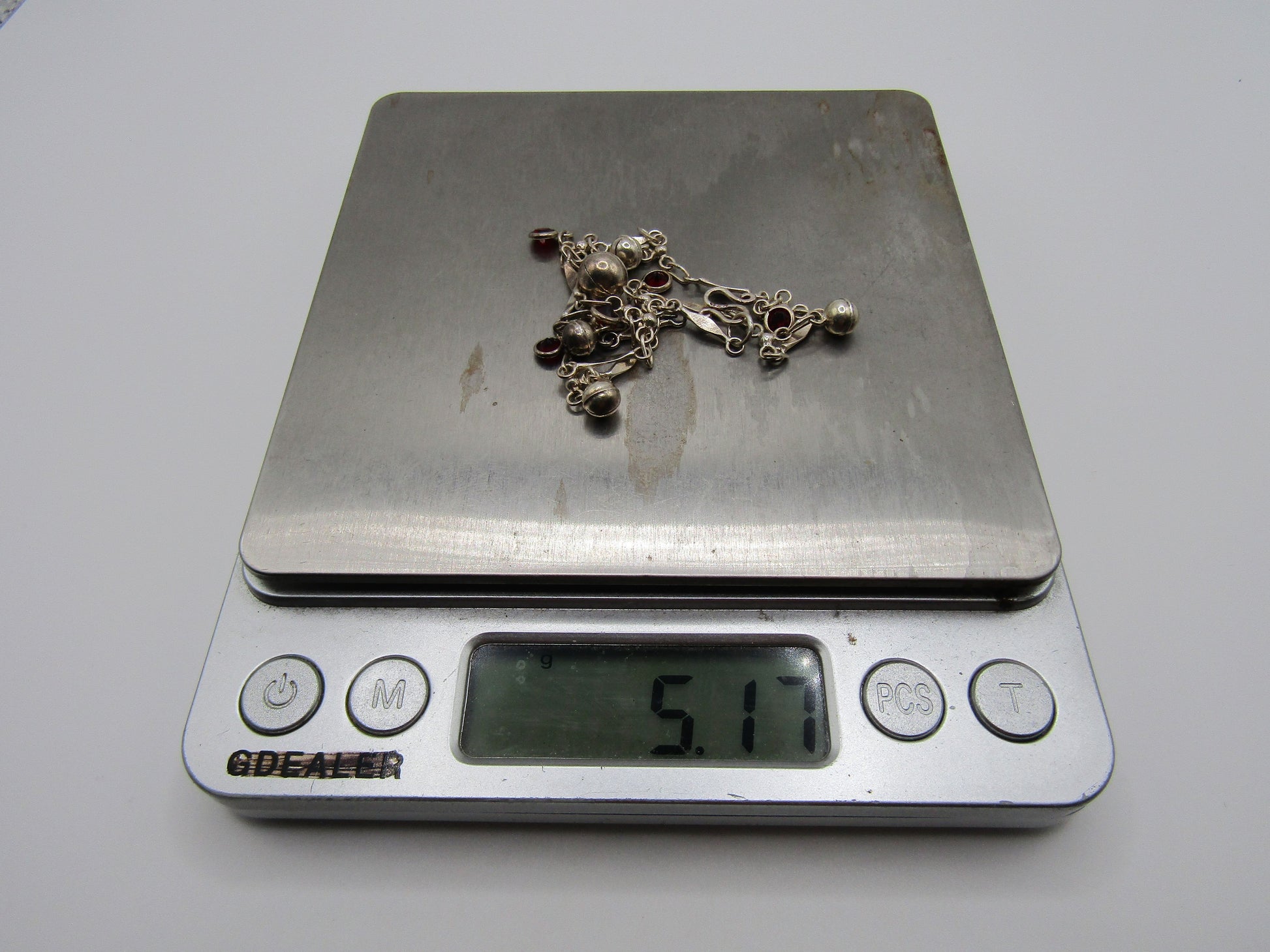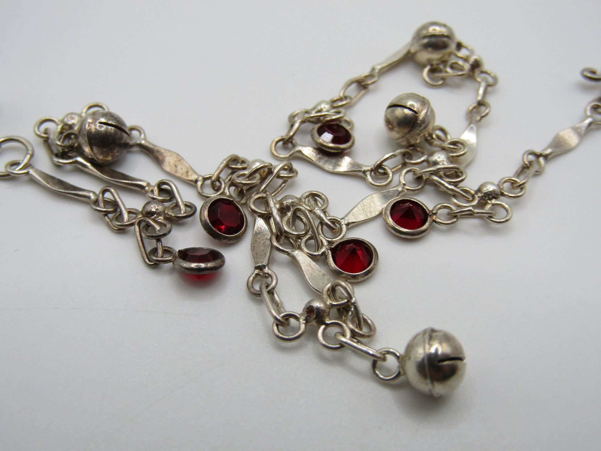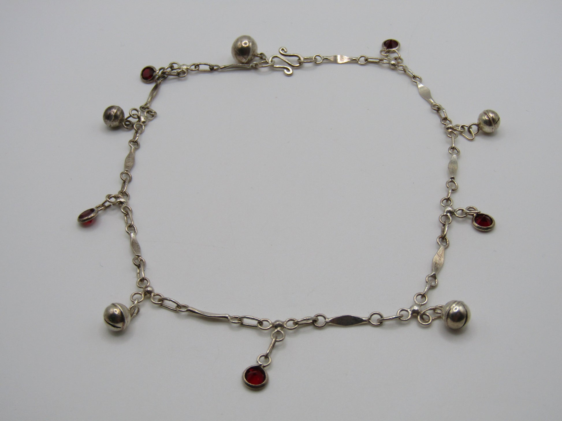 9.5" Sterling Silver Beaded Garnet Accent Anklet