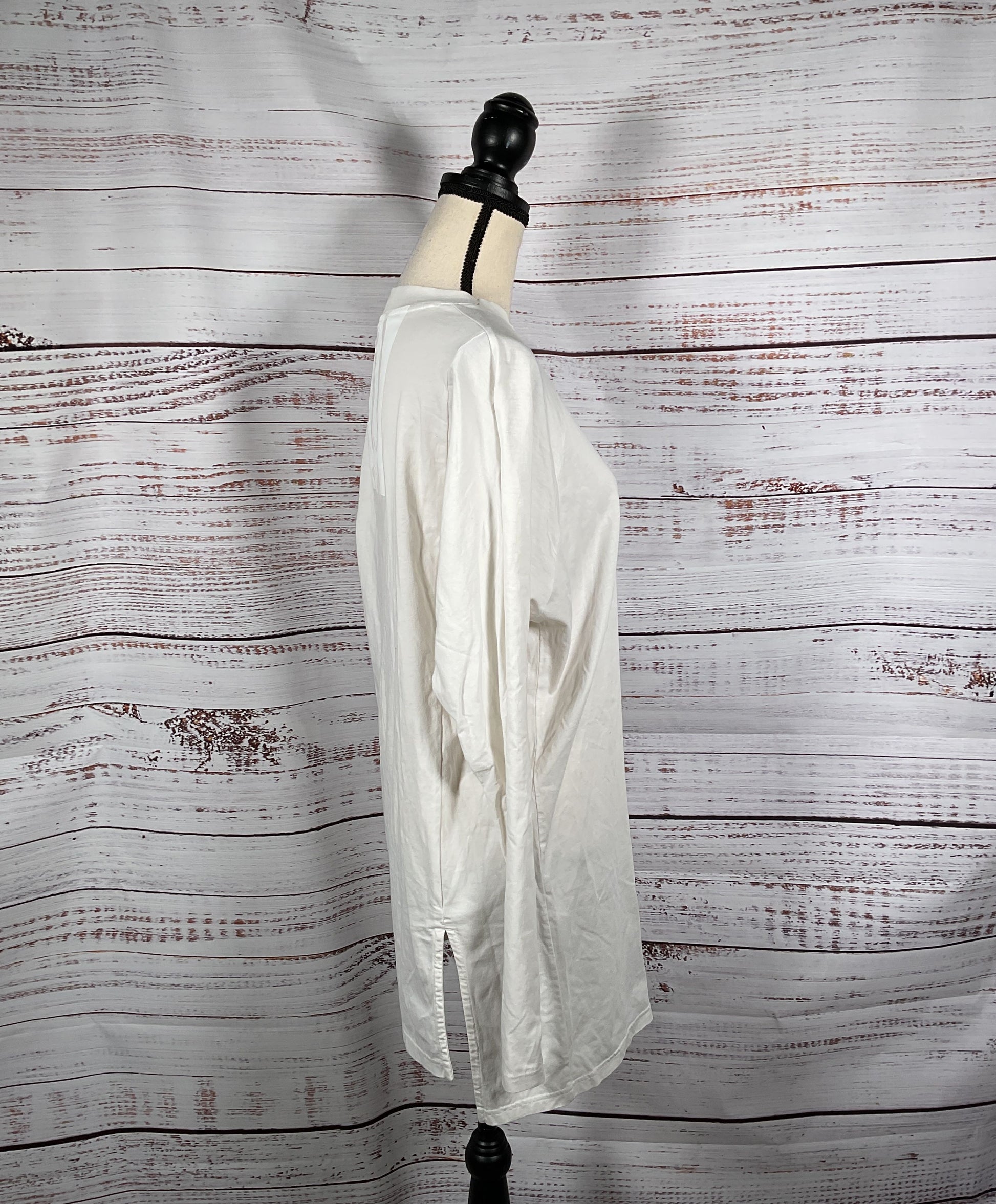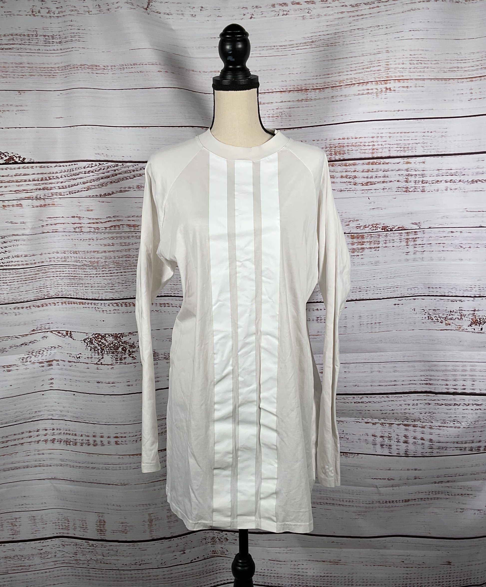Adidas White Long Sleeve Three Stripes Long Top - Size Medium