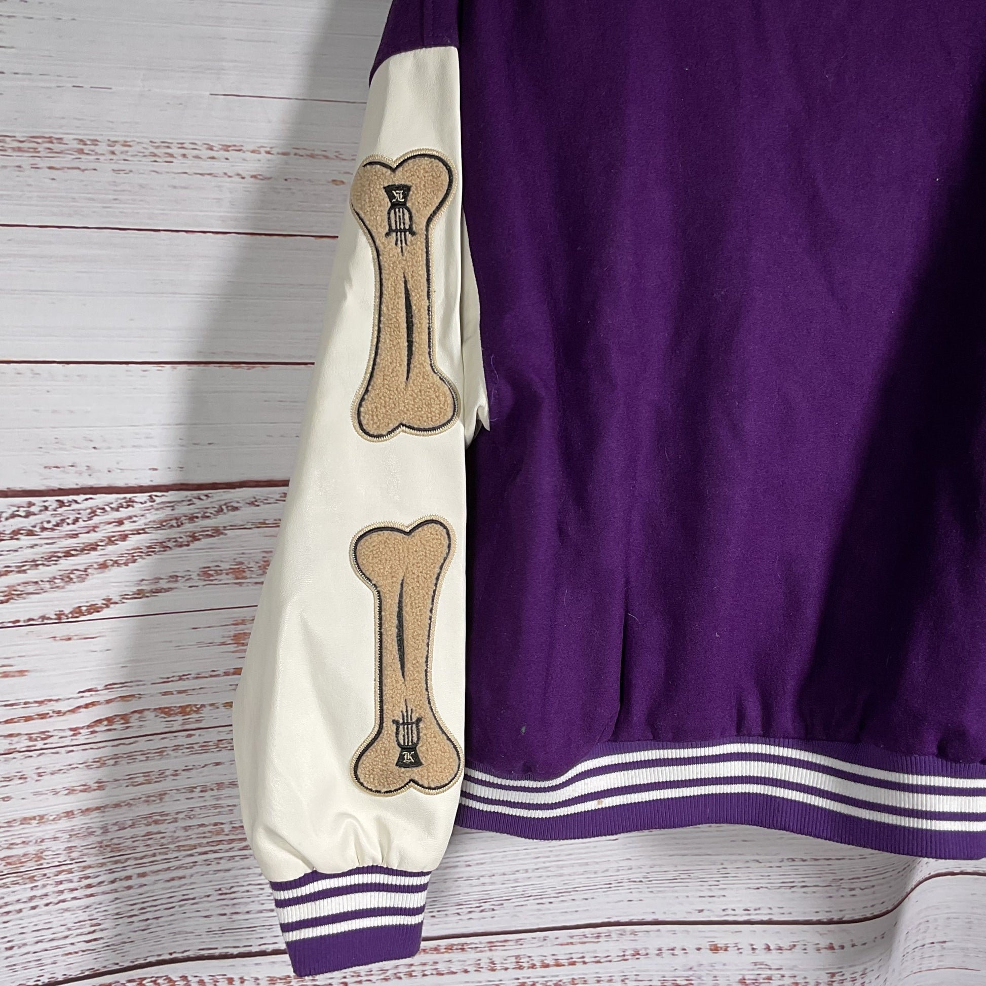 AELFRIC EDEN Men's Purple Bone Accent Bomber Jacket- SZ L