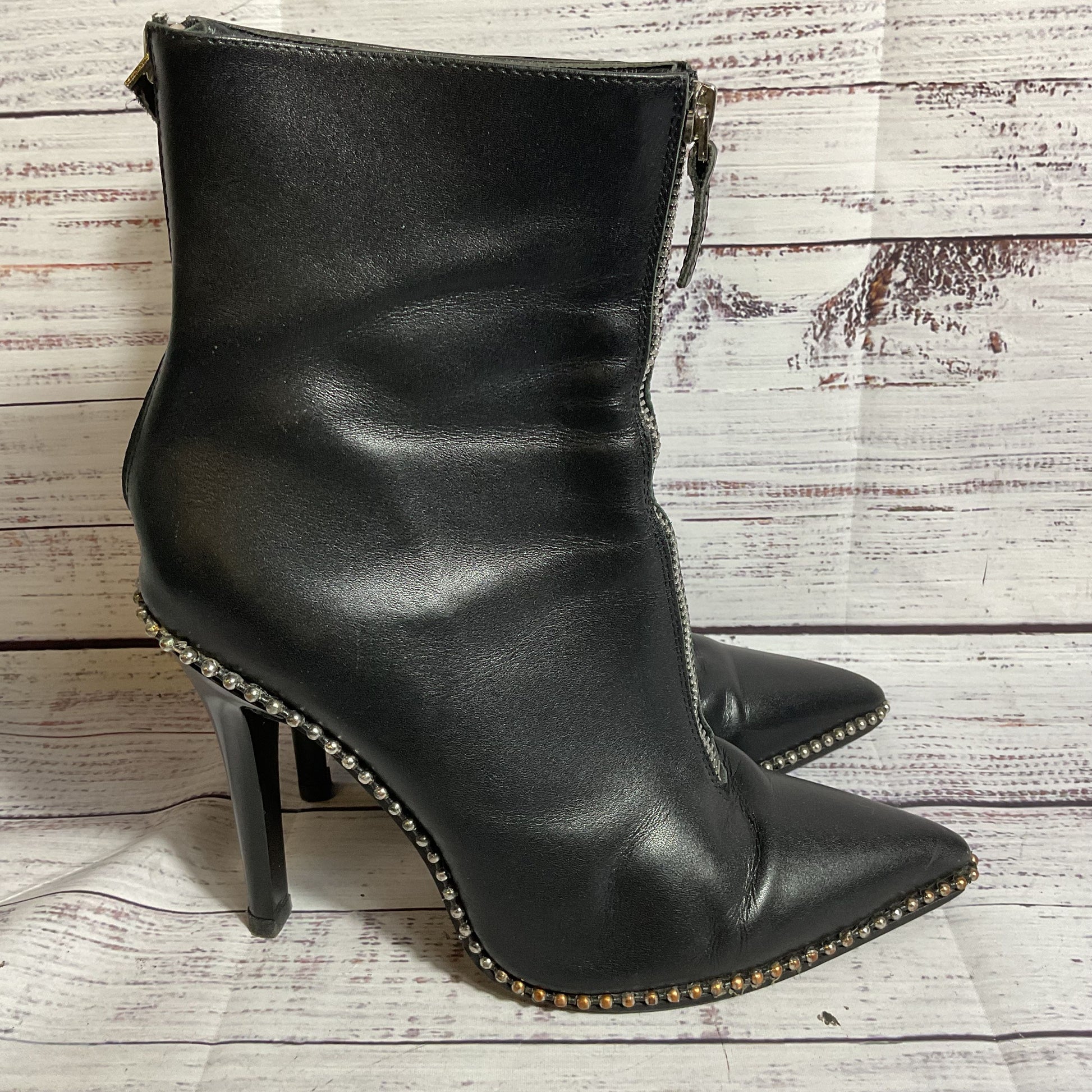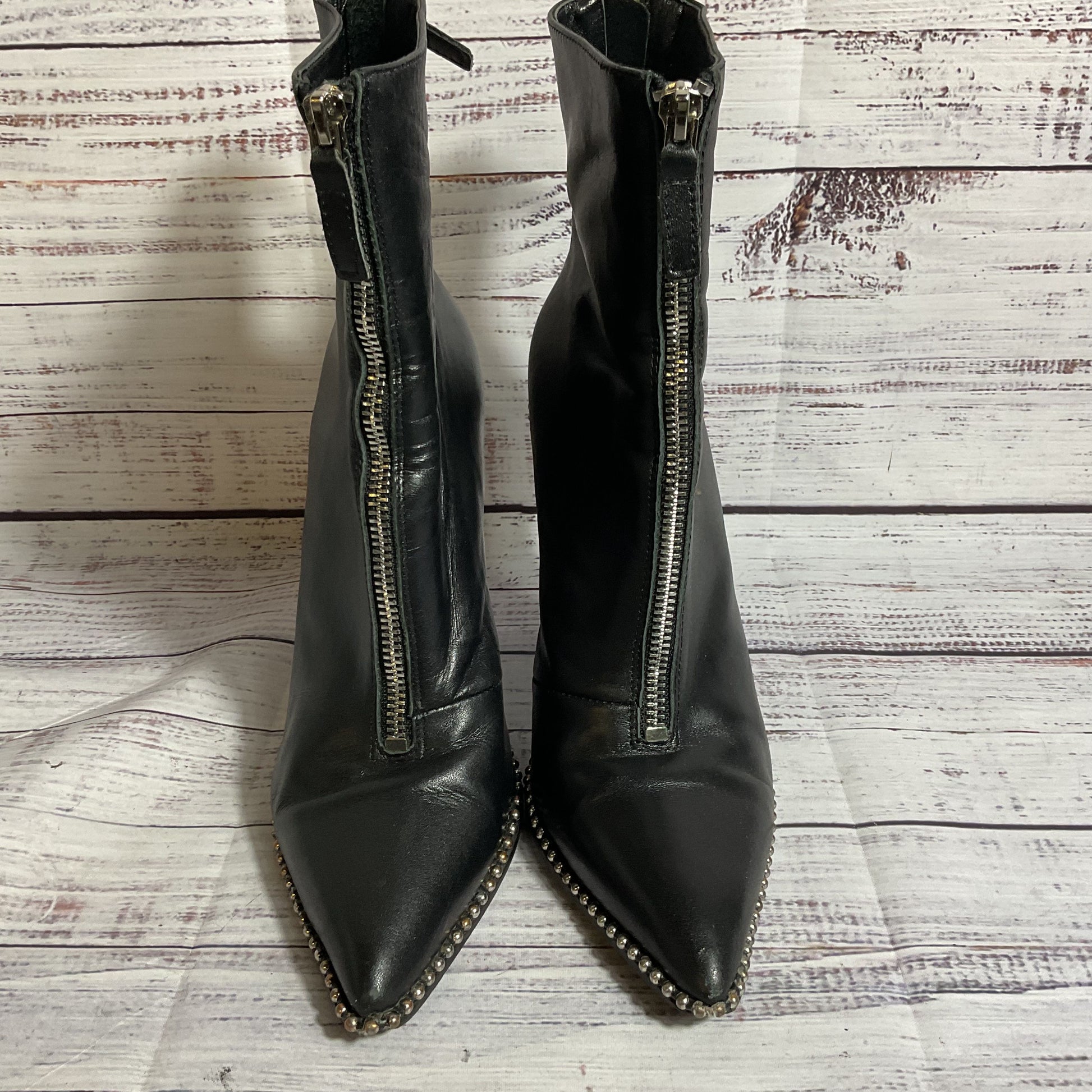 ALEXANDER WANG Eri Women's Black Studded Pointy Back Zip Booties/Boots- SZ 39