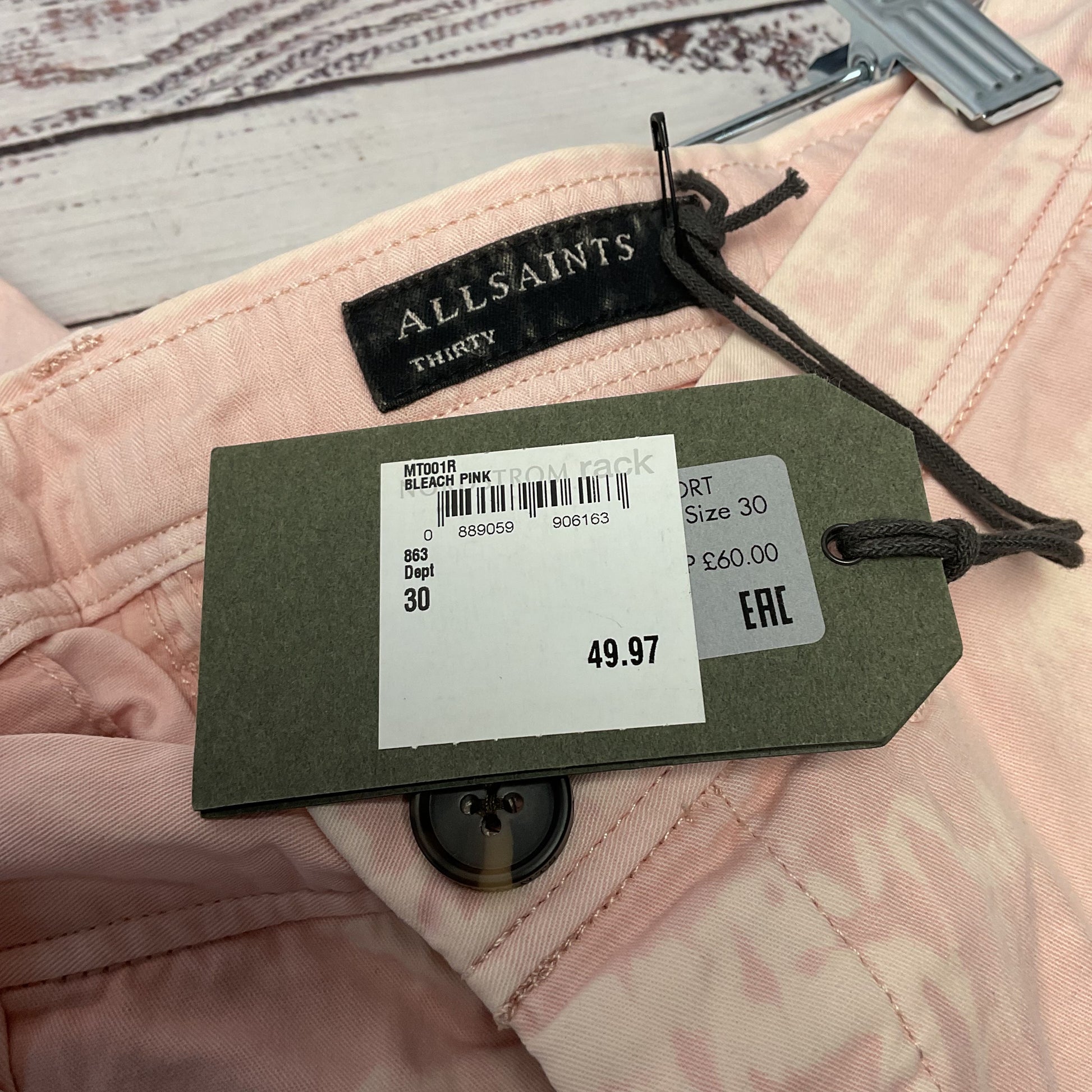 AllSaints Bowfell Twill Light Bleached Pink Shorts - Size 30 New