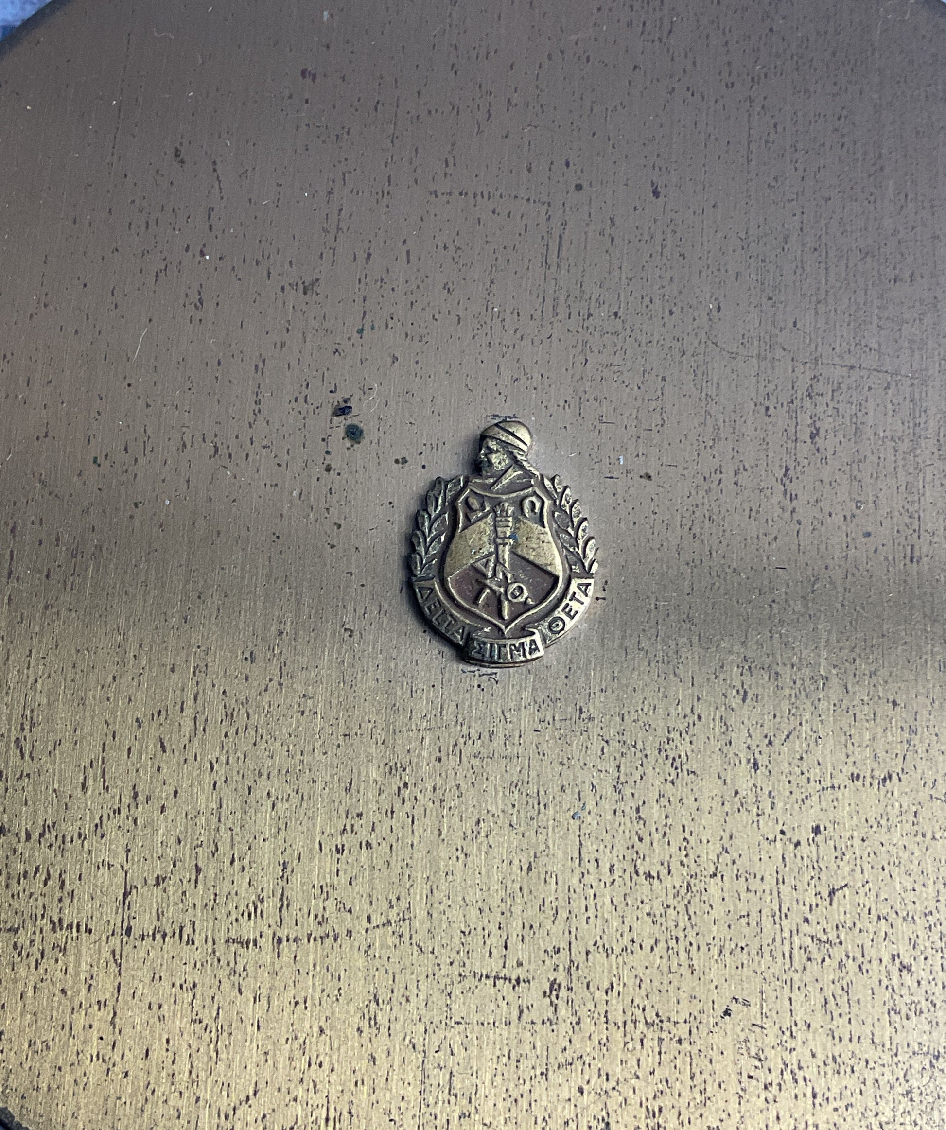 Alpha Sigma Theta Vintage Sorority Brass Powder Compact Gold Tone
