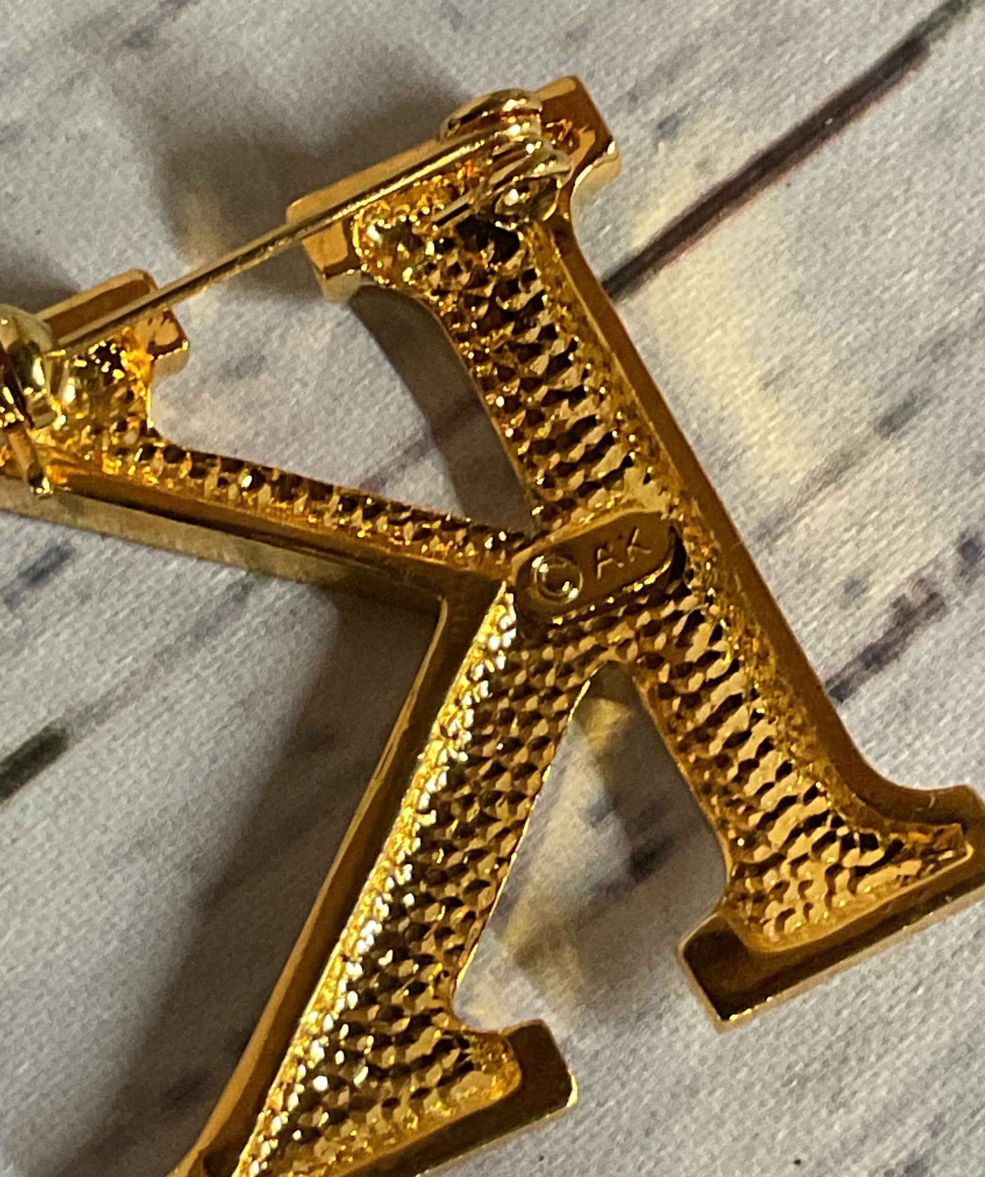 Anne Klein Gold Tone Vintage "K" Brooch 1.25"