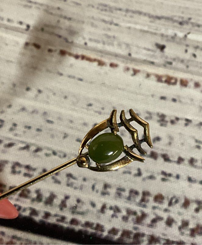 ANSON Sterling Silver Jade Vintage Stick Pin