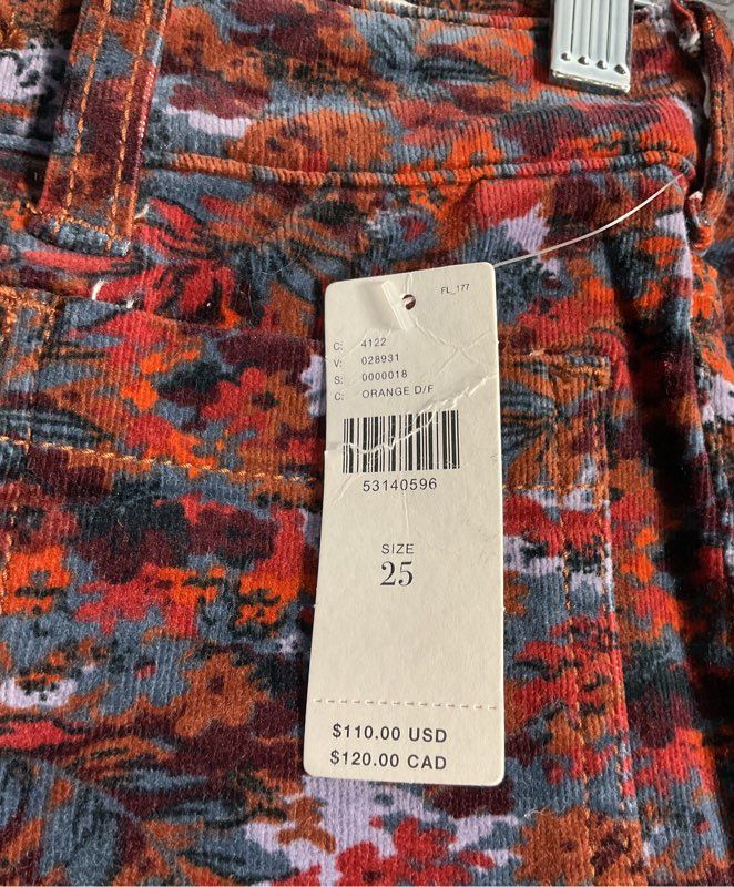 Anthropologie Pilcro and the Letterpress High Rise Skinny Corduroy Floral Pants