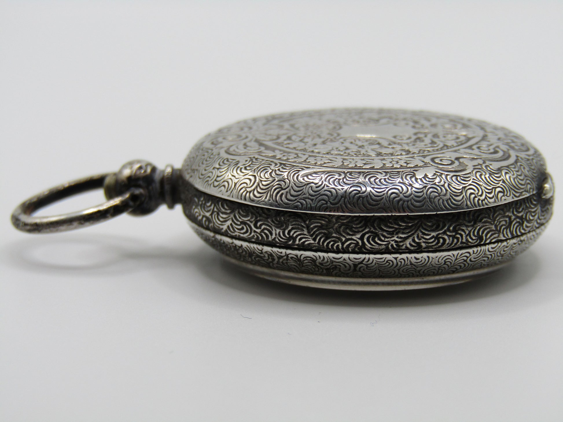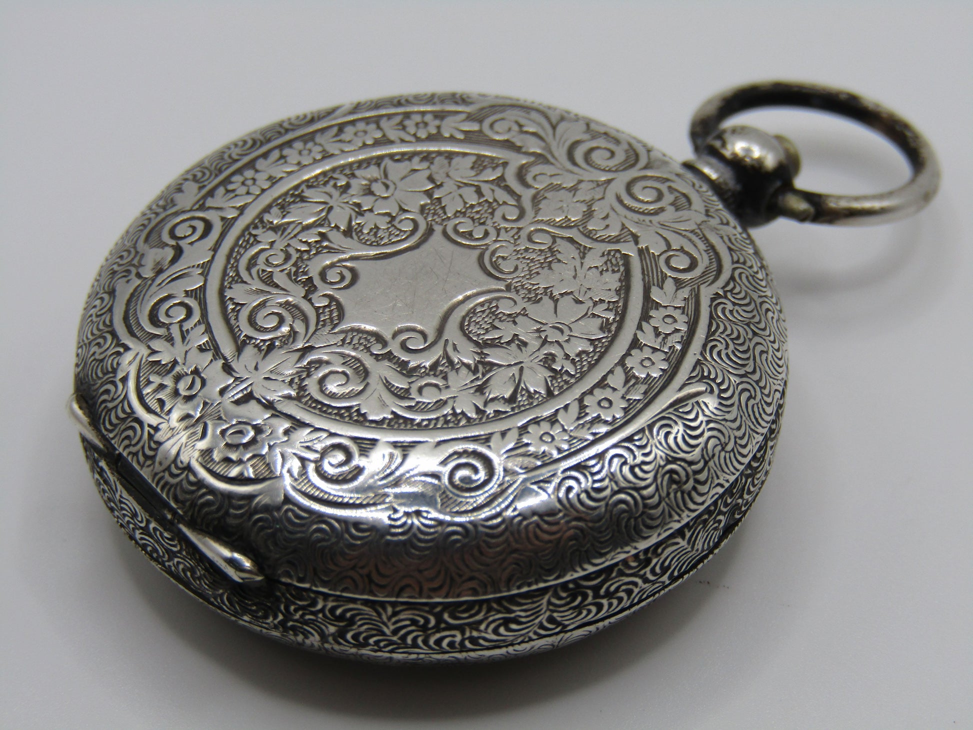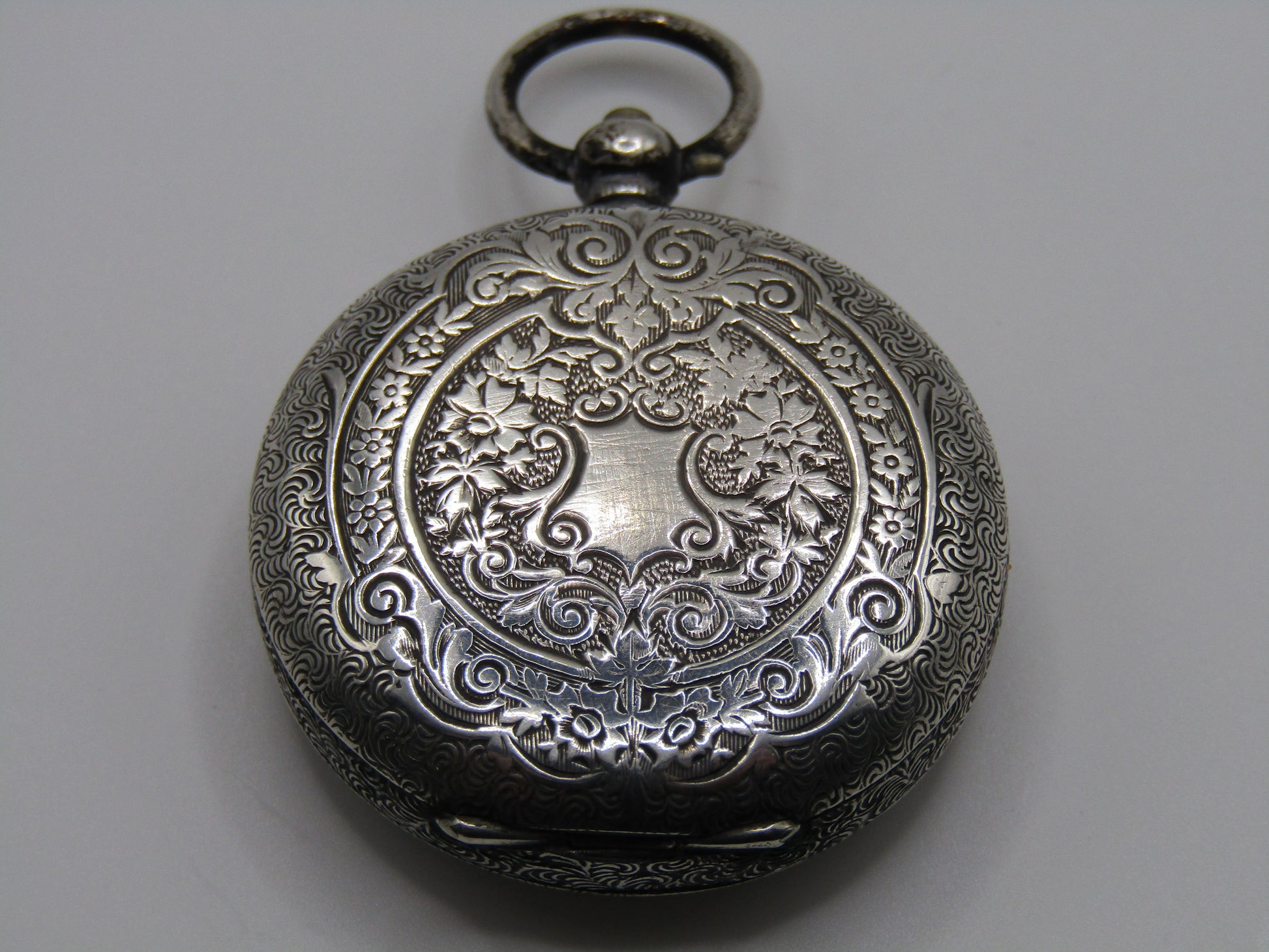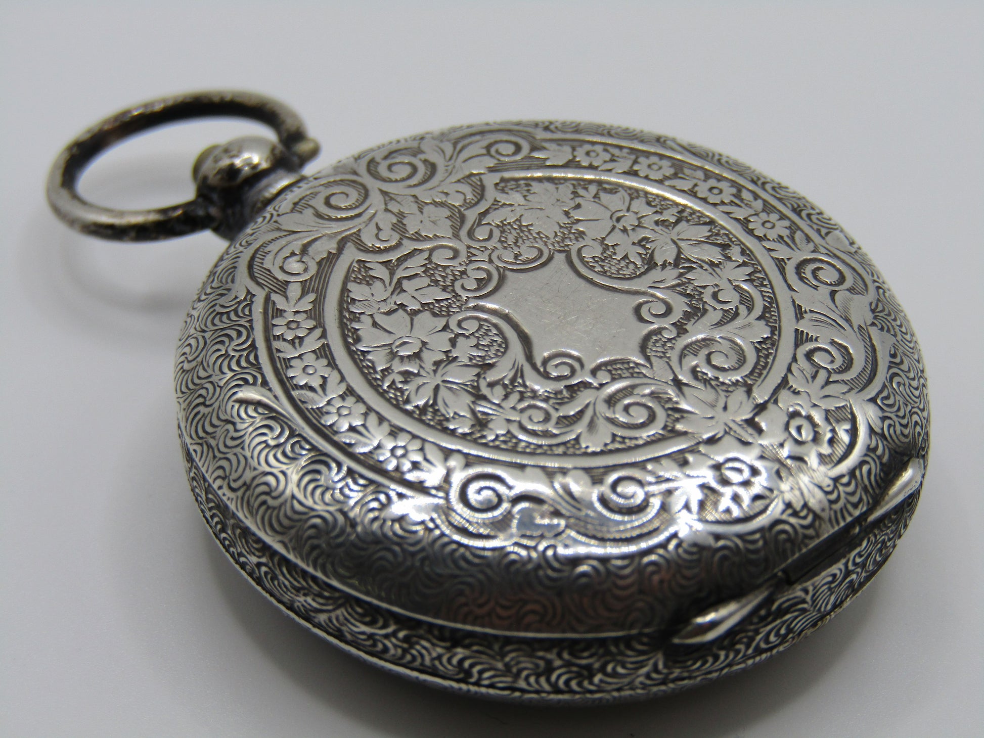 Antique David Perret & Fils The Plan Ornate Sterling Silver Pocket Watch