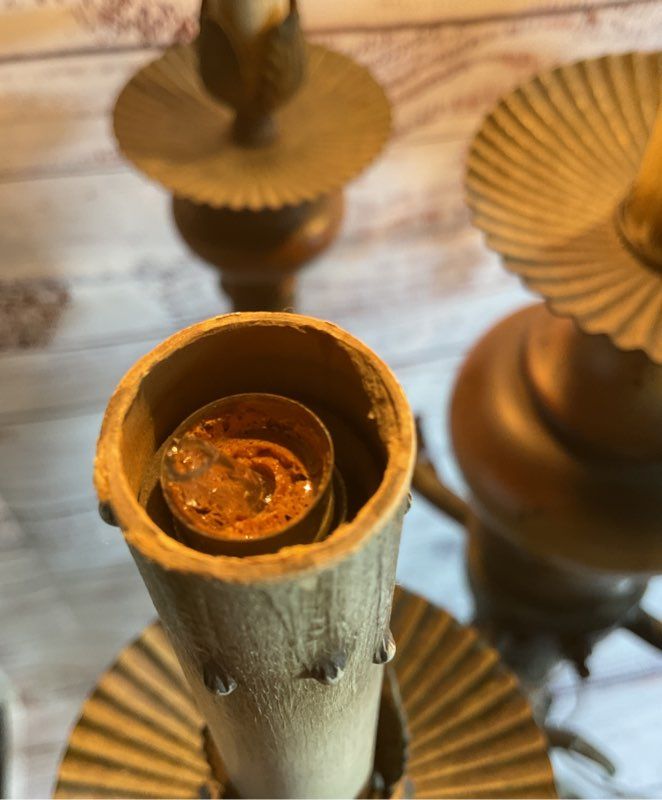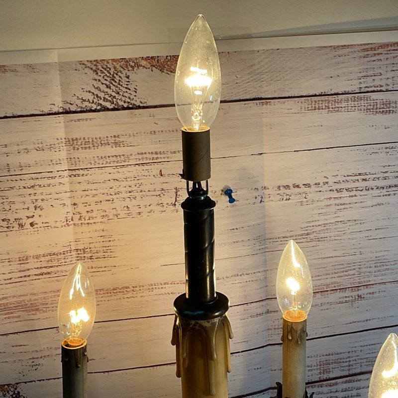 ANTIQUE French?? Brass and Wood Base 5 Arm Ornate Lamp- 42" Tall