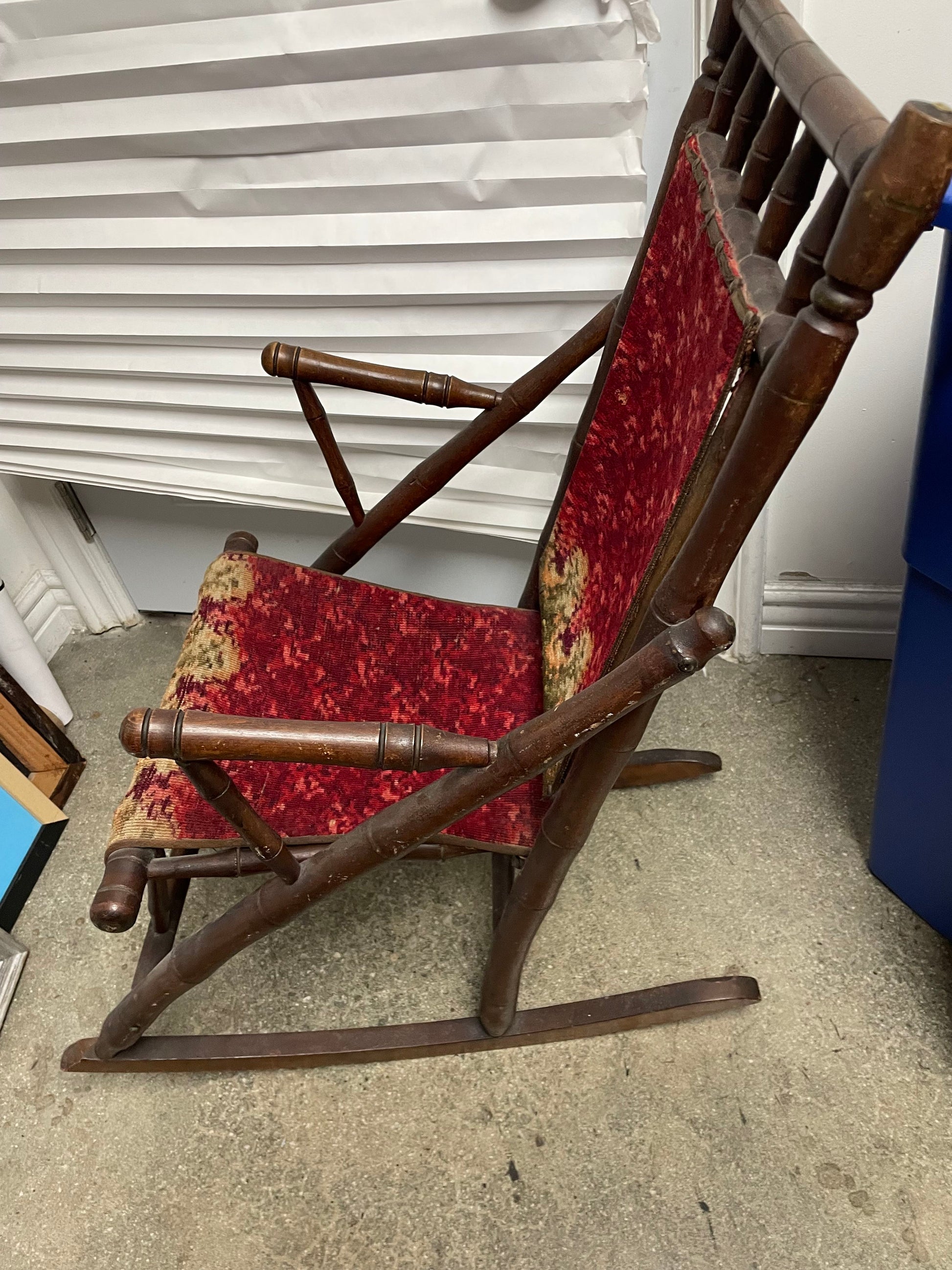 ANTIQUE Victorian Velvet Fabric Wood Rocking Chair