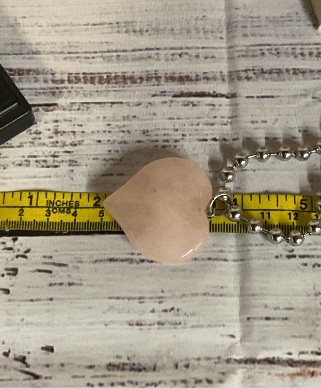 Arcanum Silver Tone Chain Necklace with Rose Quartz Heart Pendant