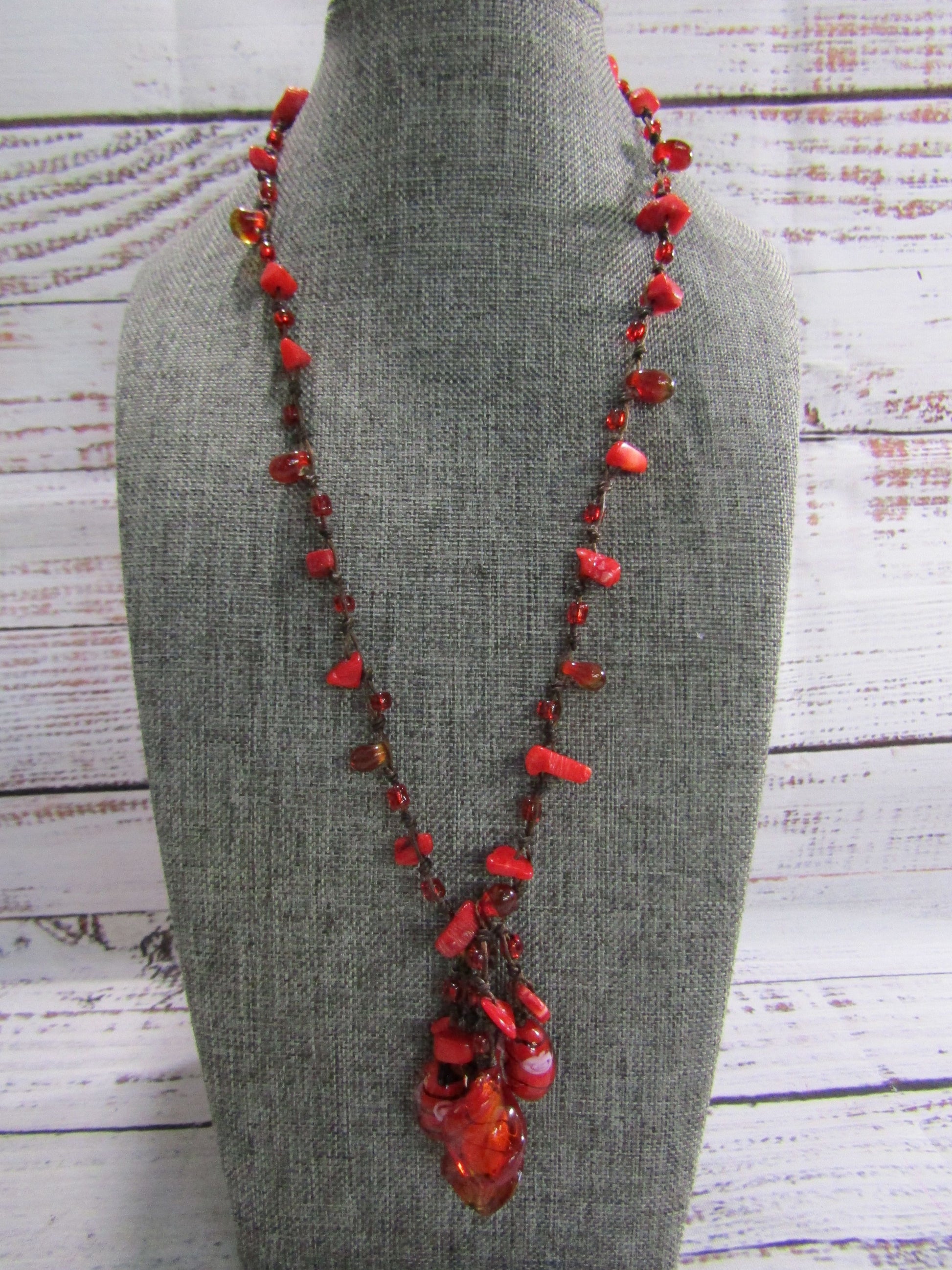 Artisan Handcrafted Murano Glass Red Coral Tied Necklace