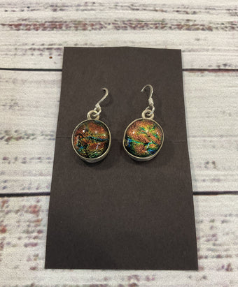 Artisan Handcrafted Sterling Silver Dichroic Glass Drop Dangle Earrings