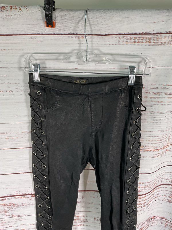AS BY DF Women's Black Faux Leather Side Lace Pants Size 24x38