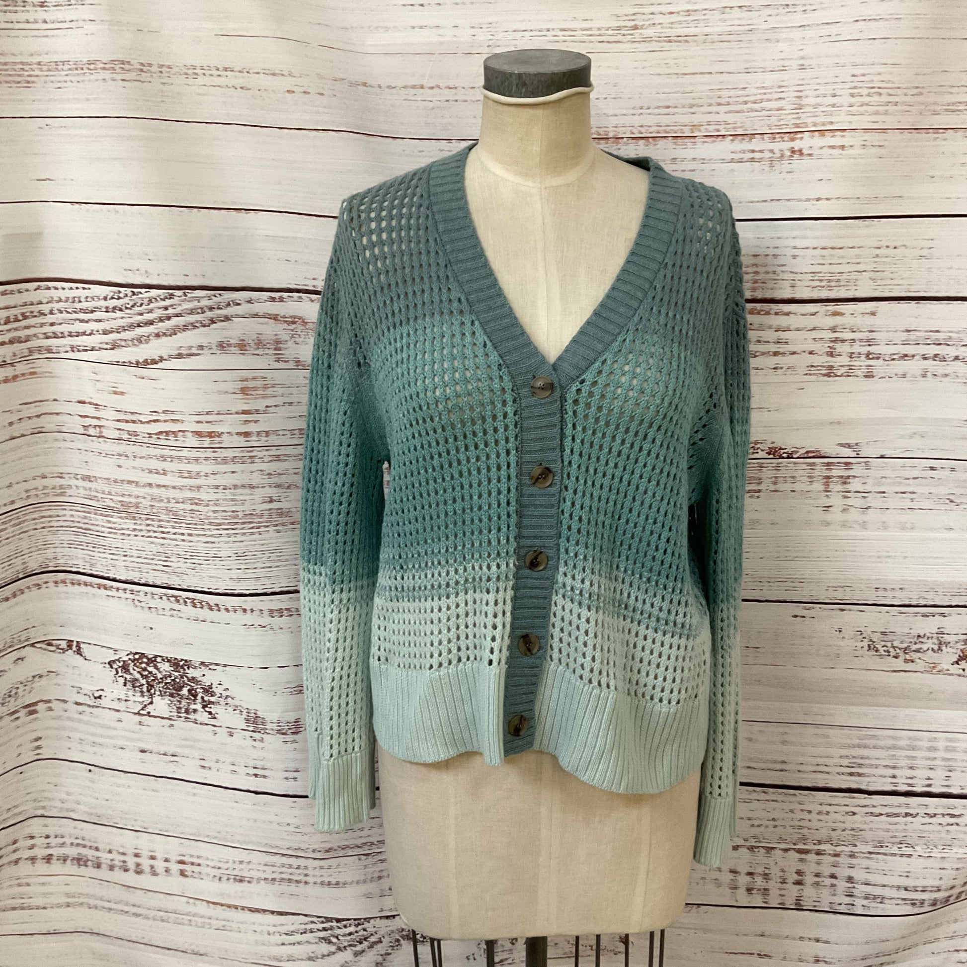 ATM Green Turquoise Gradient Knit Cardigan Sweater - Size S