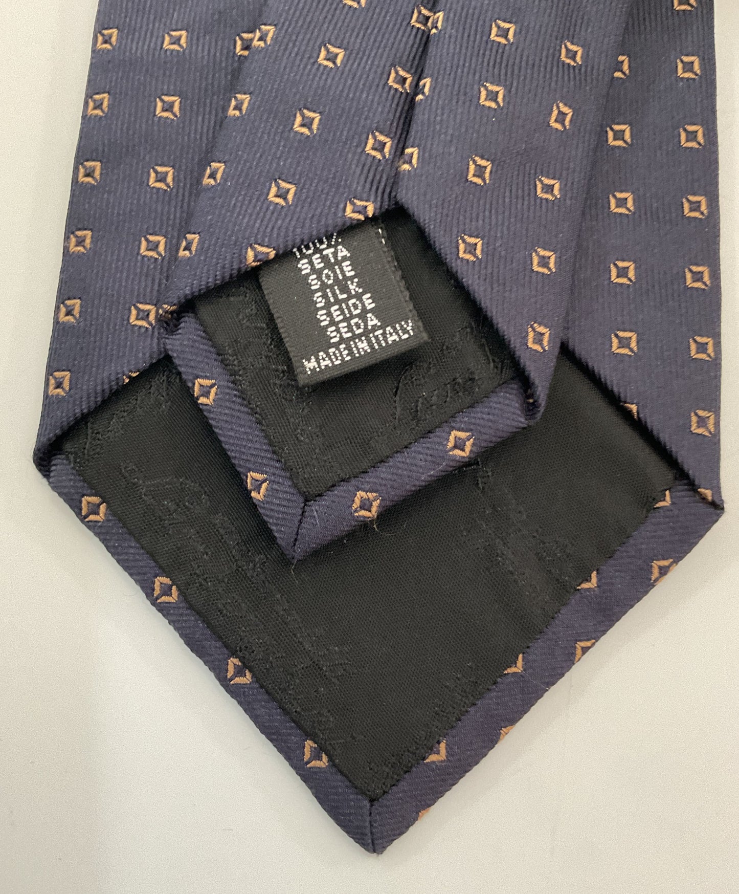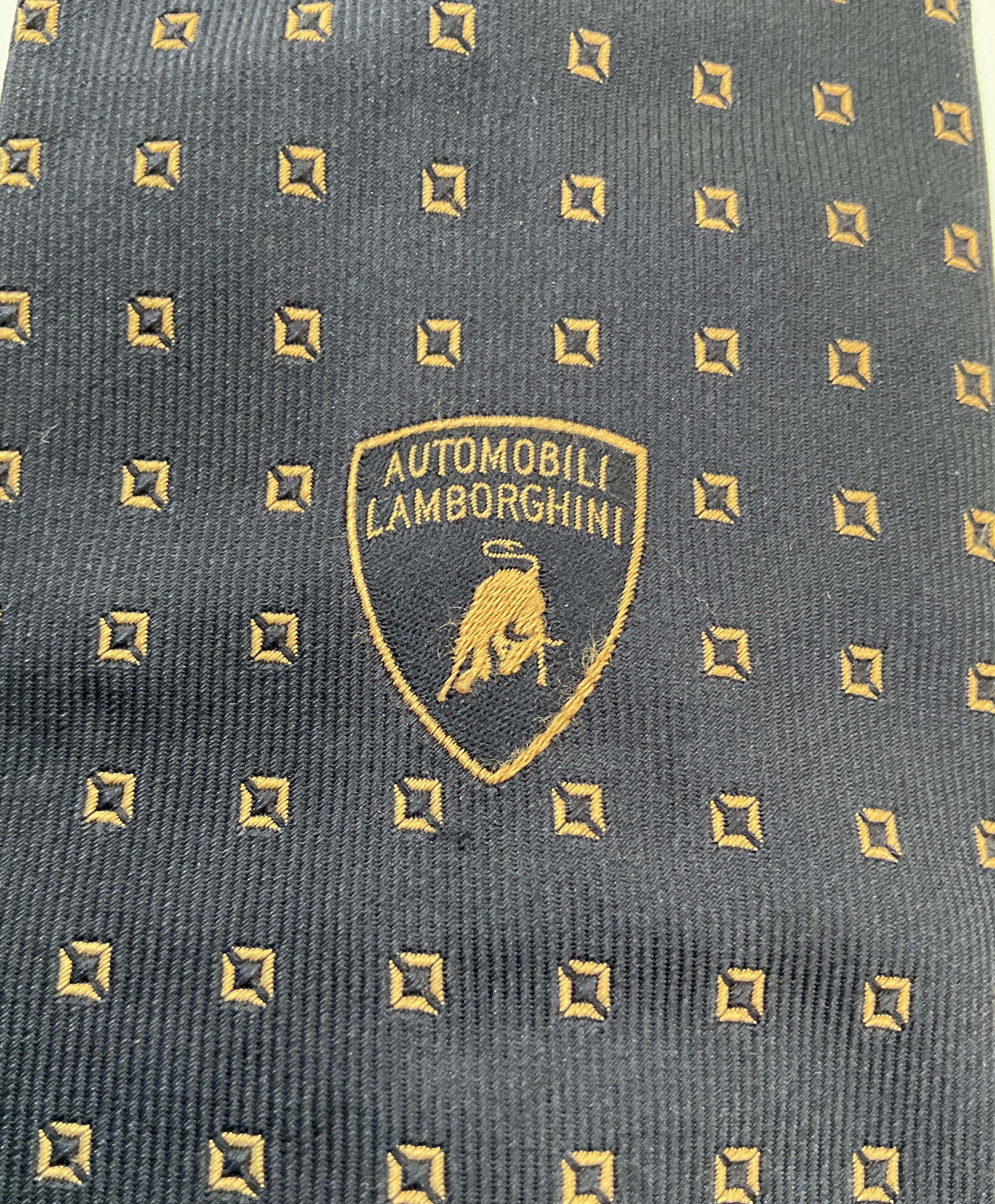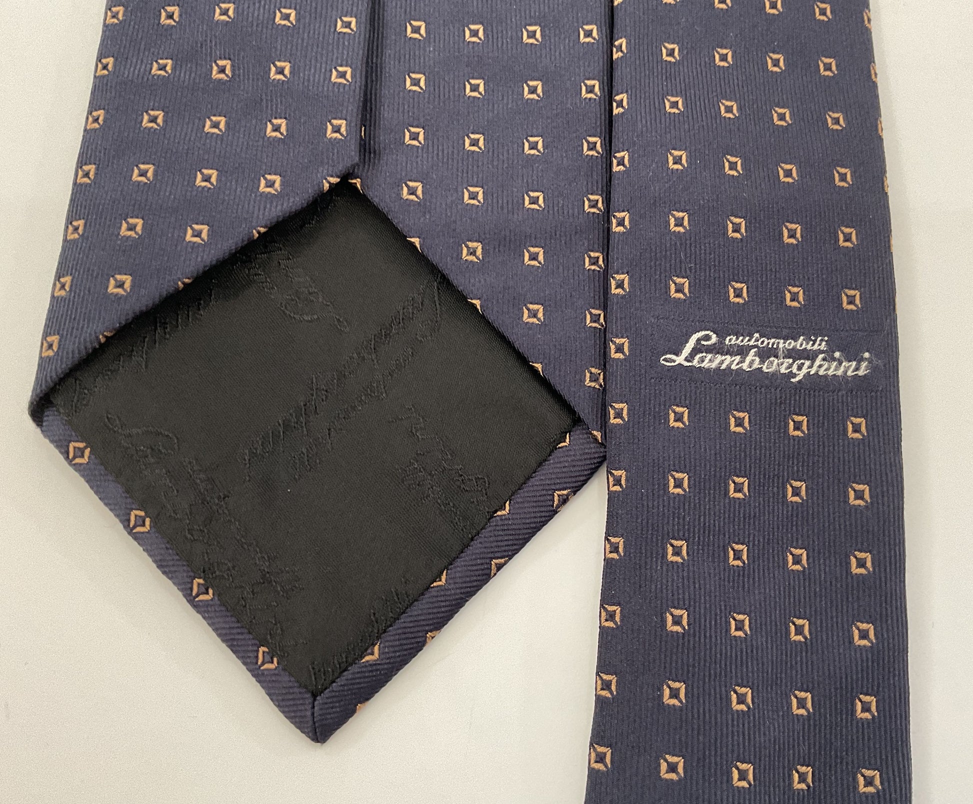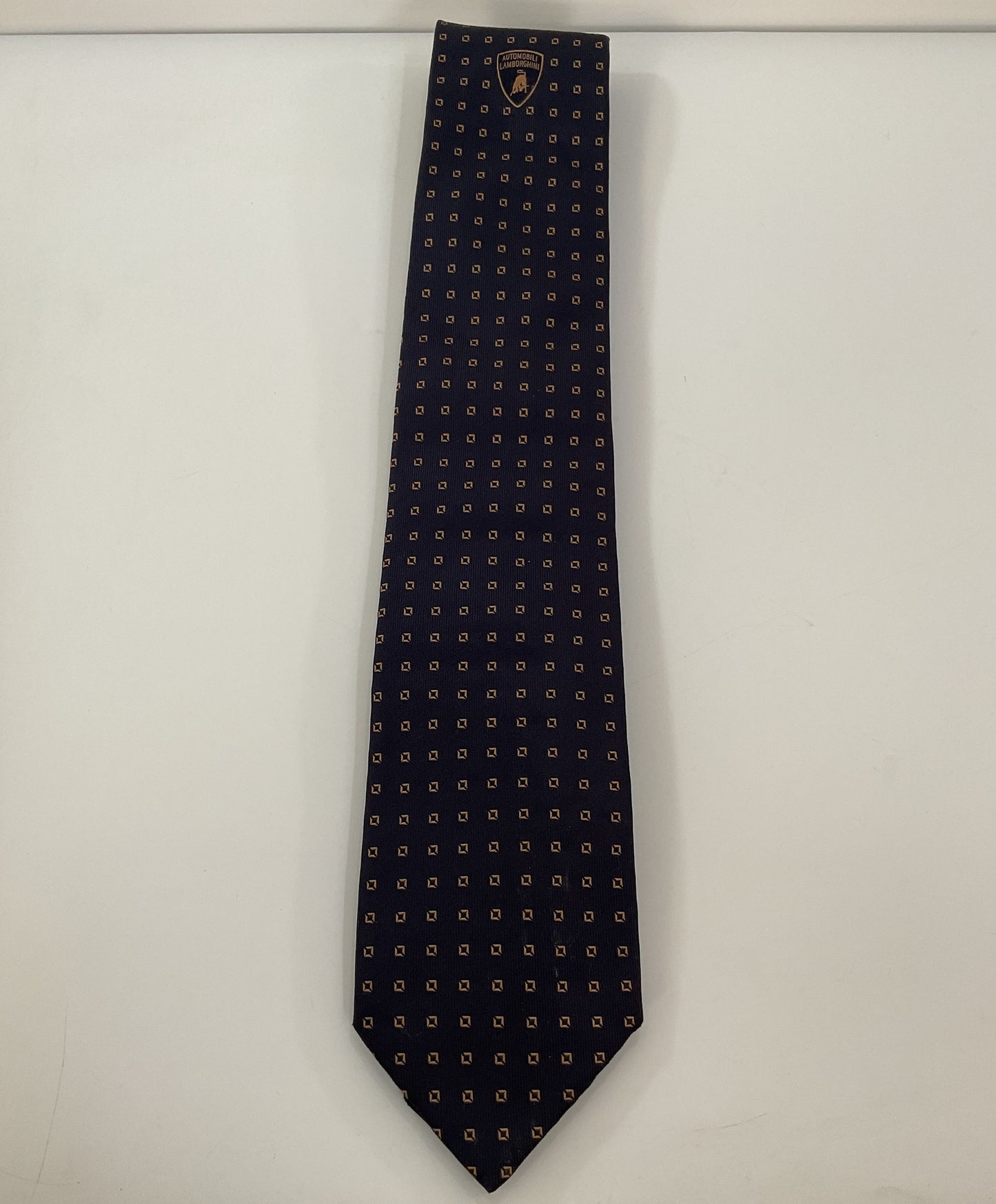 Automobili Lamborghini Men's Navy Blue Square Print Silk Tie Made in Italy
