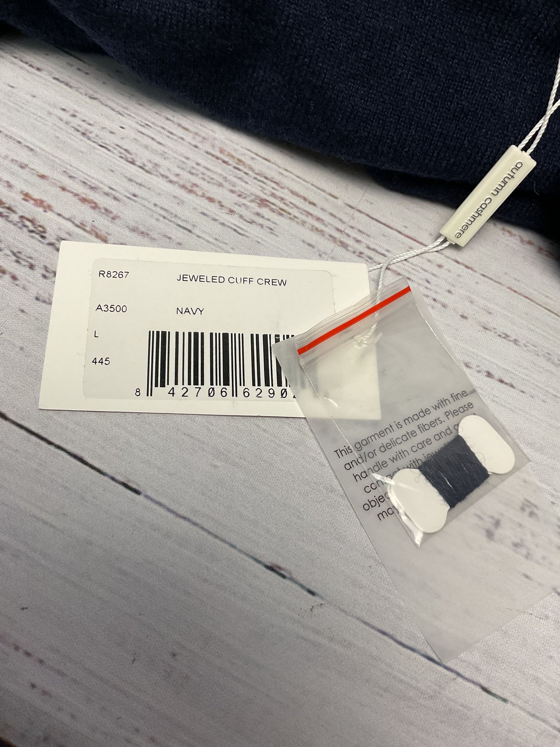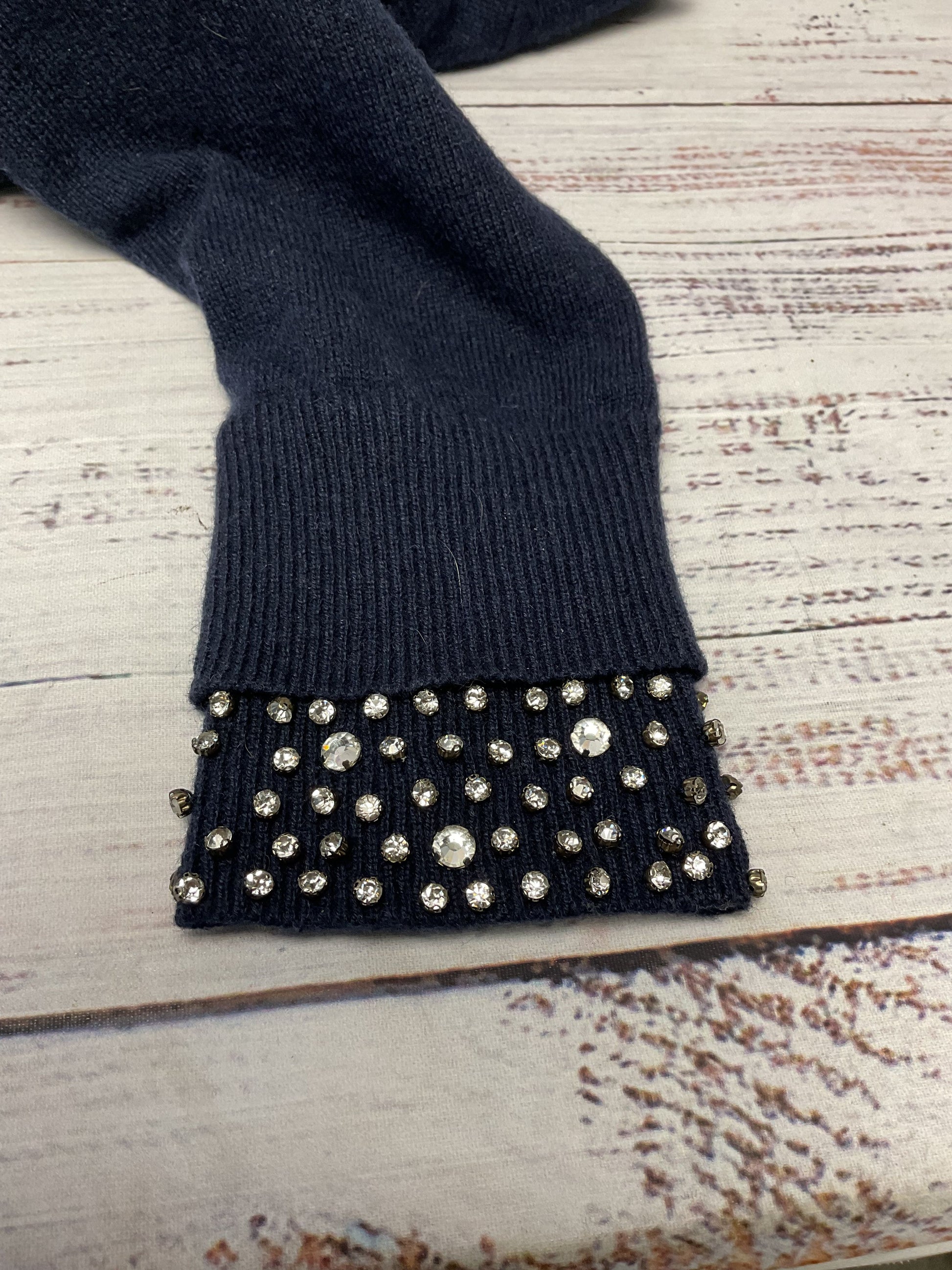 Autumn Cashmere Blue Cashmere Knit Rhinestone Jeweled Cuff Crew Neck Sweater - Size L