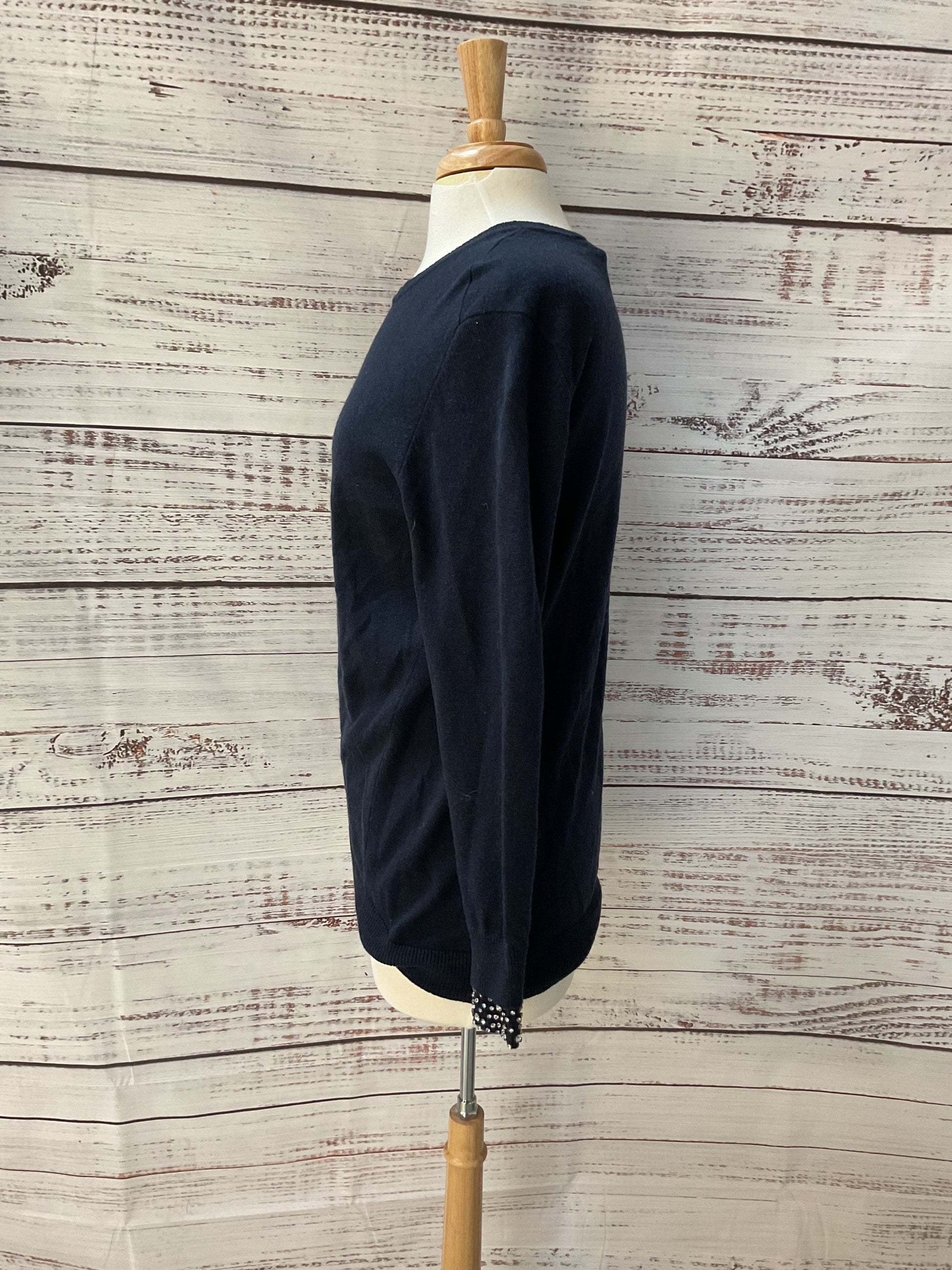 Autumn Cashmere Blue Knit Rhinestone Jeweled Cuff Crew Neck Sweater Size L