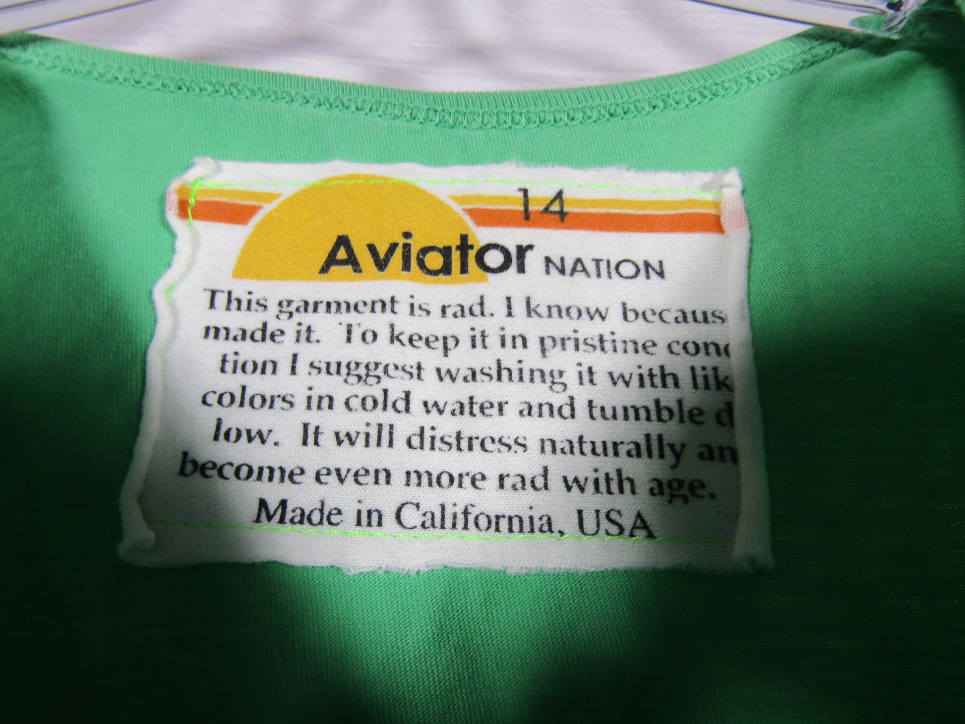 Aviator Nation Boy's Peace Symbol Print Green Cotton Tank Top Size 14