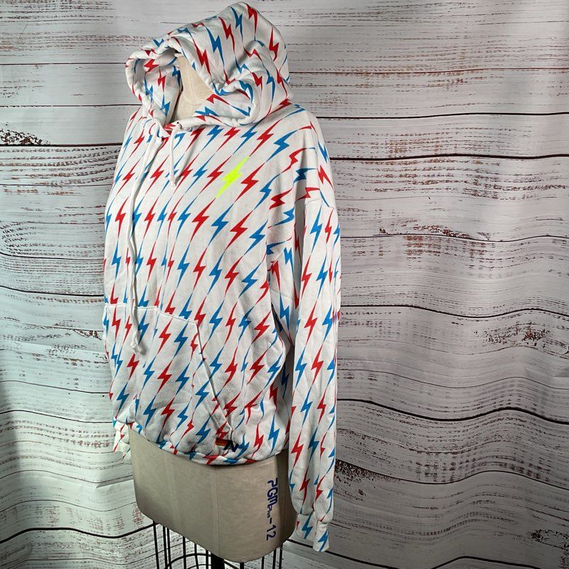 AVIATOR NATION Men's/ Unisex White Bolt Logo Embroidered Bolt Hoodie- SZ M
