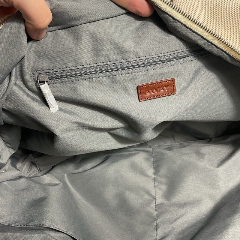 AWAY Off White Canvas Brown Leather Trim Weekender Duffel Bag Carry On