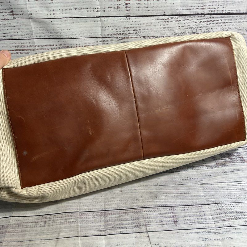 Type: Off White Canvas Brown Leather Trim Weekender Duffel Bag Carry On
