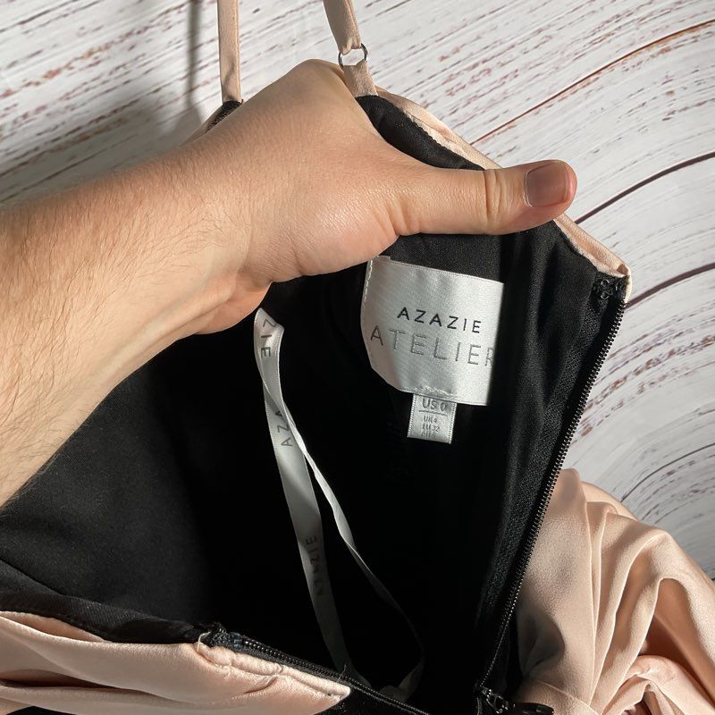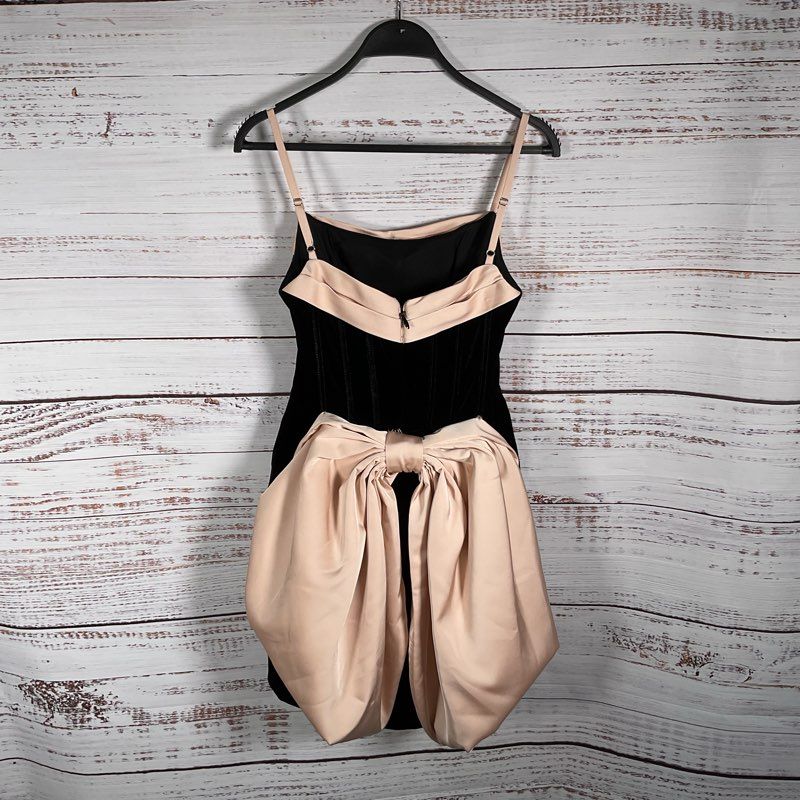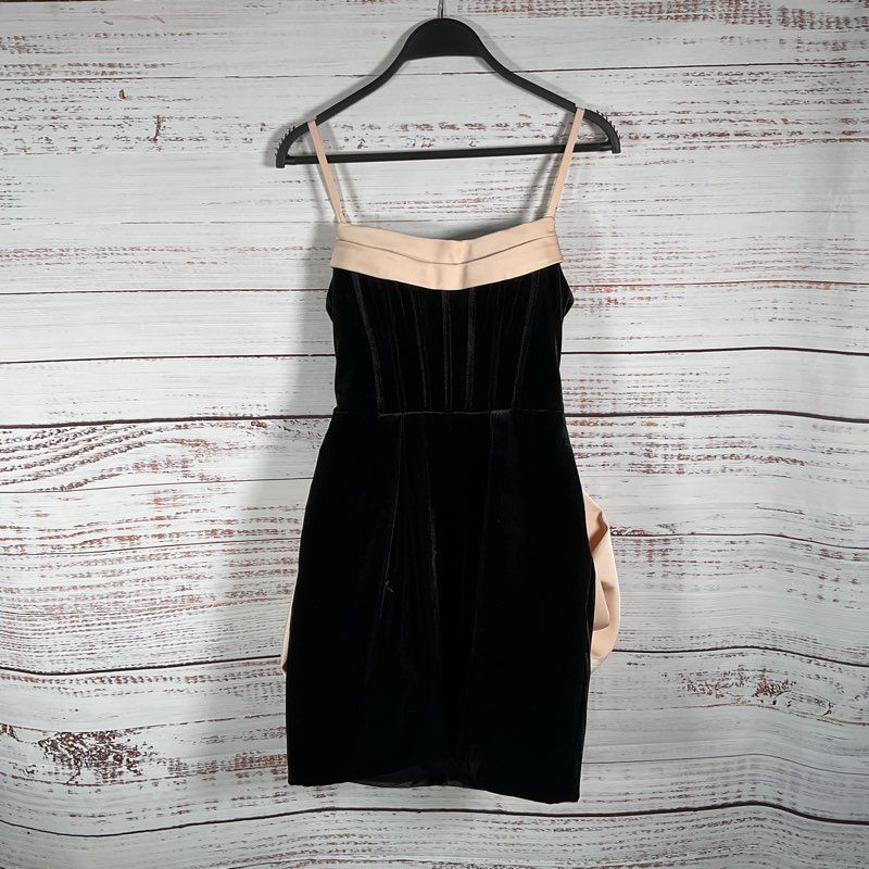 Azazie Atelier Joanna Black & Blush Ribbon Back Velvet Mini Dress Women's Size 0