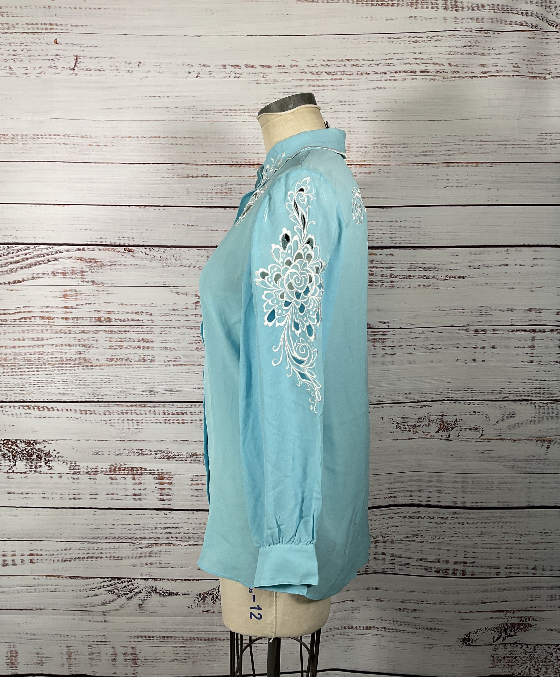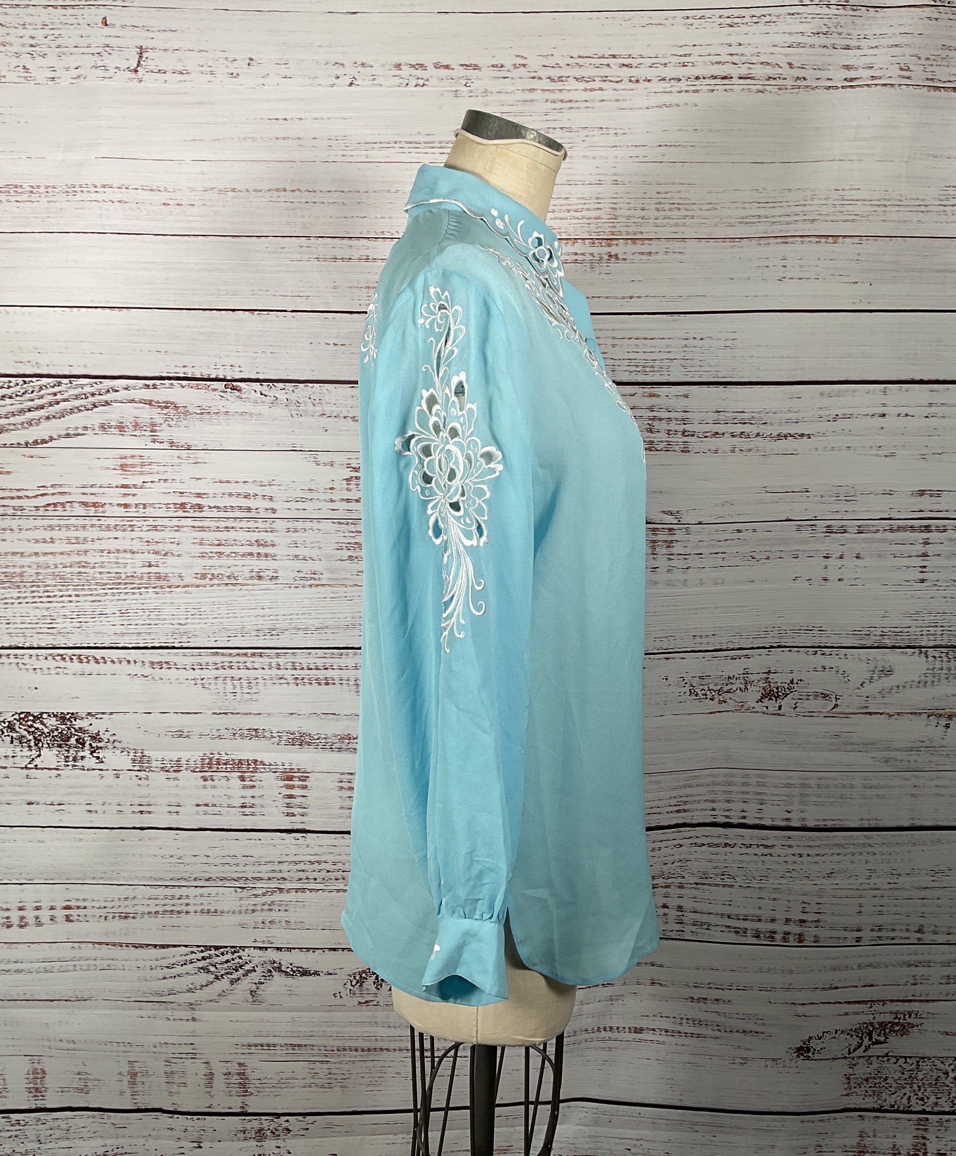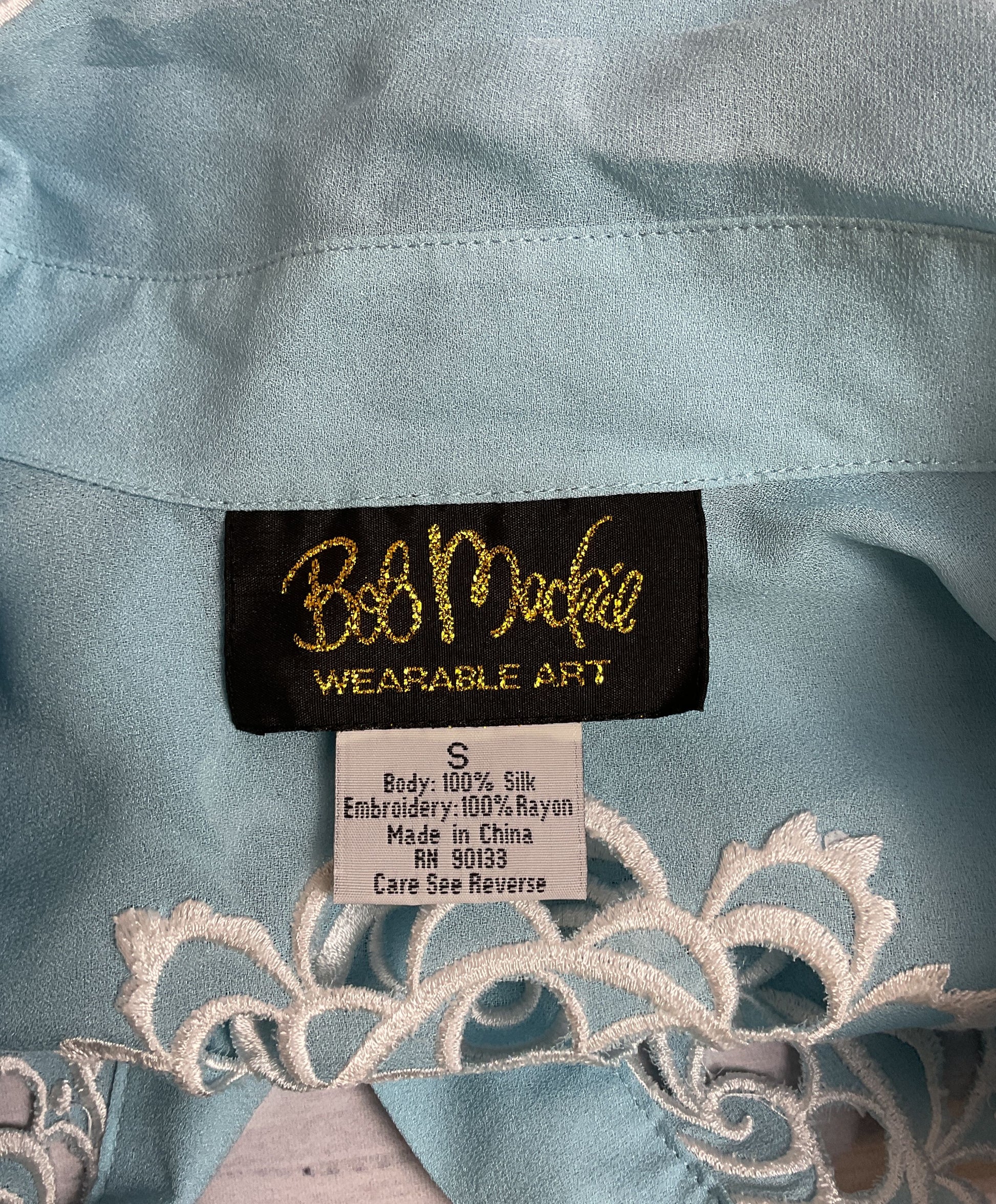 Bob Mackie Wearable Art 100% Silk Button-Up w/ Embroidery Applique and Cut-Outs