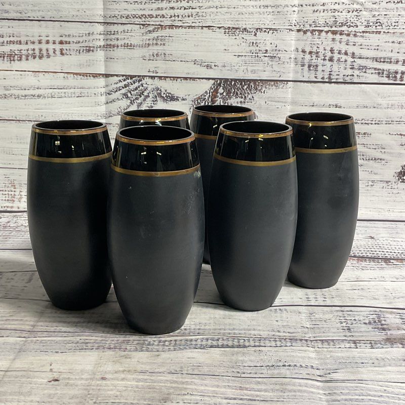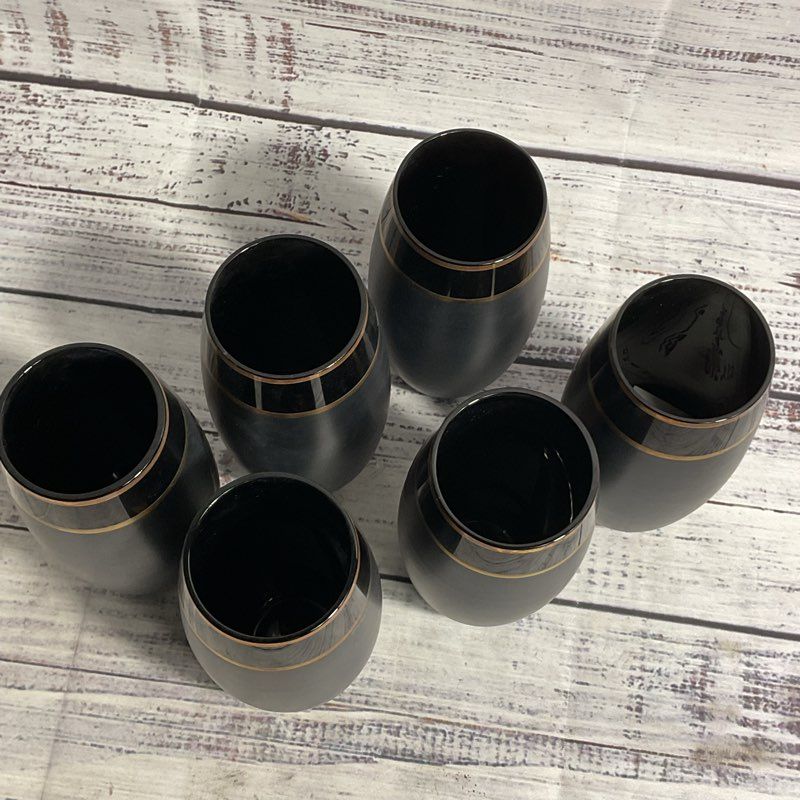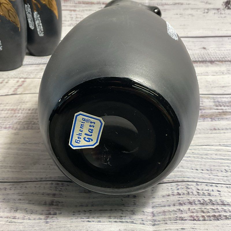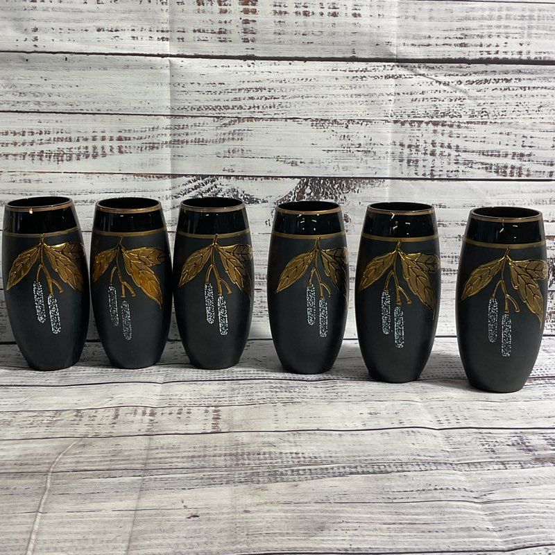 Bohemia Glass 7 Pc. Czech Black & Gold Leaf Pattern 5.5" Cup & 13" Pitcher Set