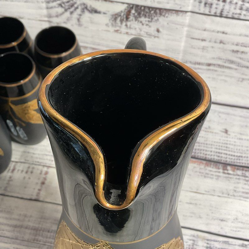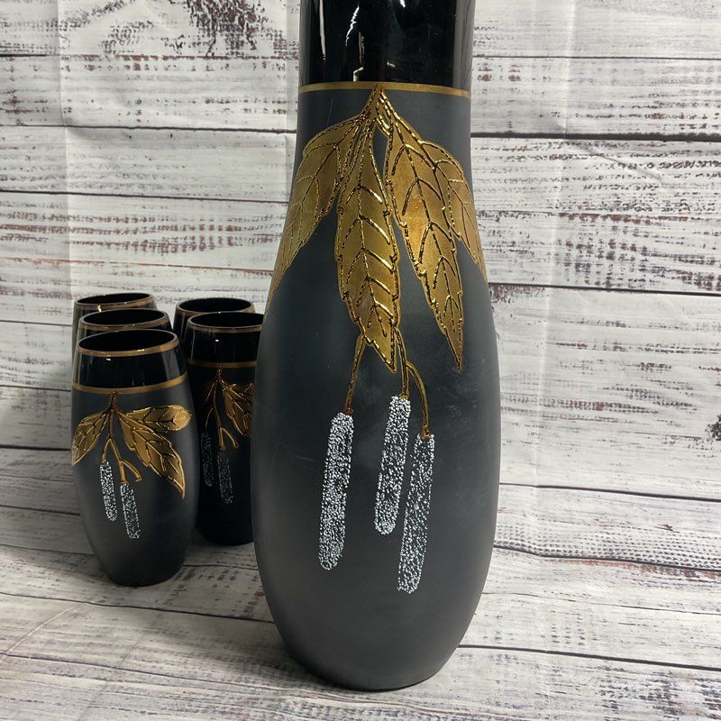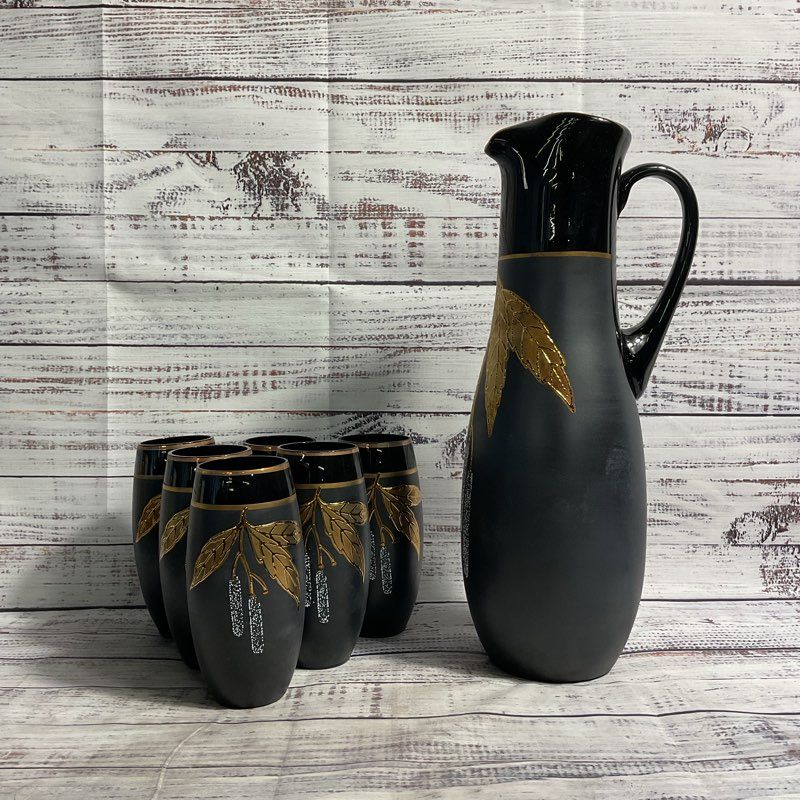 Type: 7 Pc. Czech Black & Gold Leaf Pattern 5.5" Cup & 13" Pitcher Set