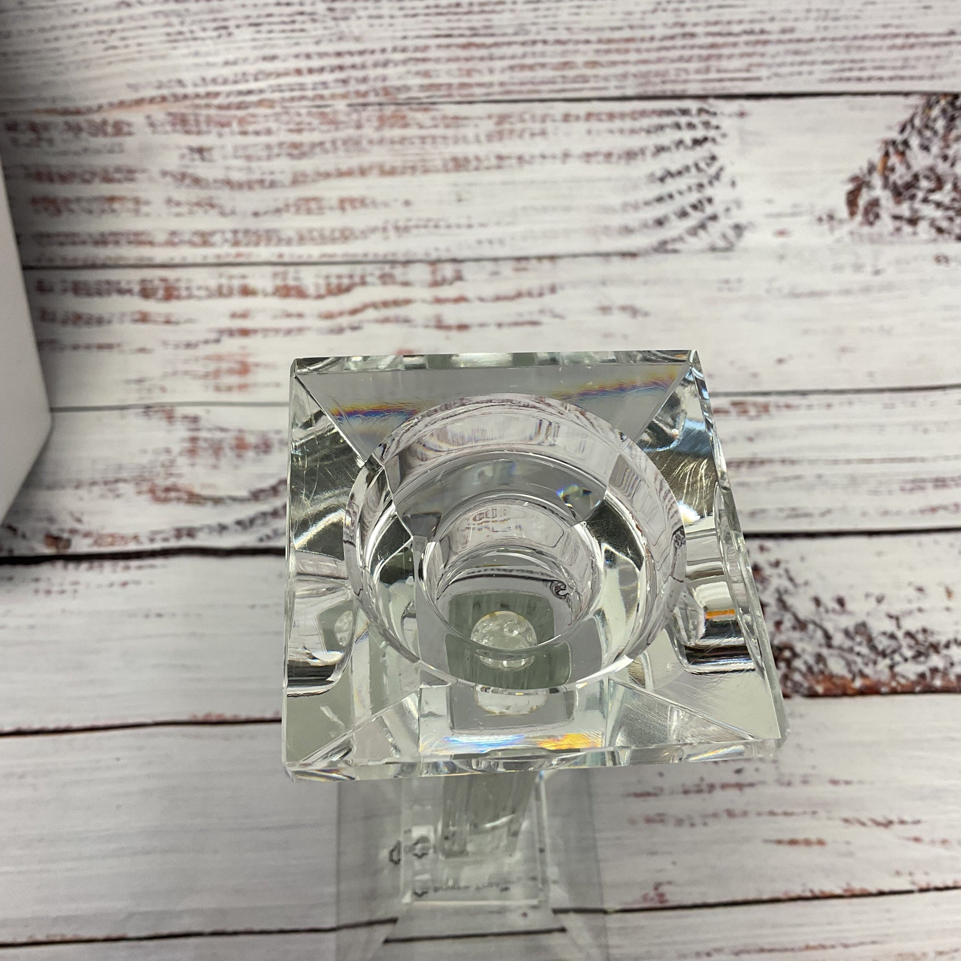 Boker Tov Shalom Rhinestone Crystal Glass Candle Stick
