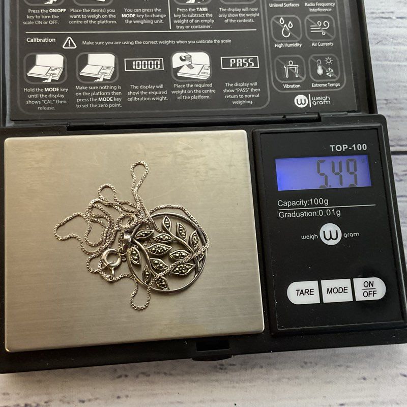 BOMA Sterling Silver Marcasite Pendant Box Chain 18" Necklace- 5.49g